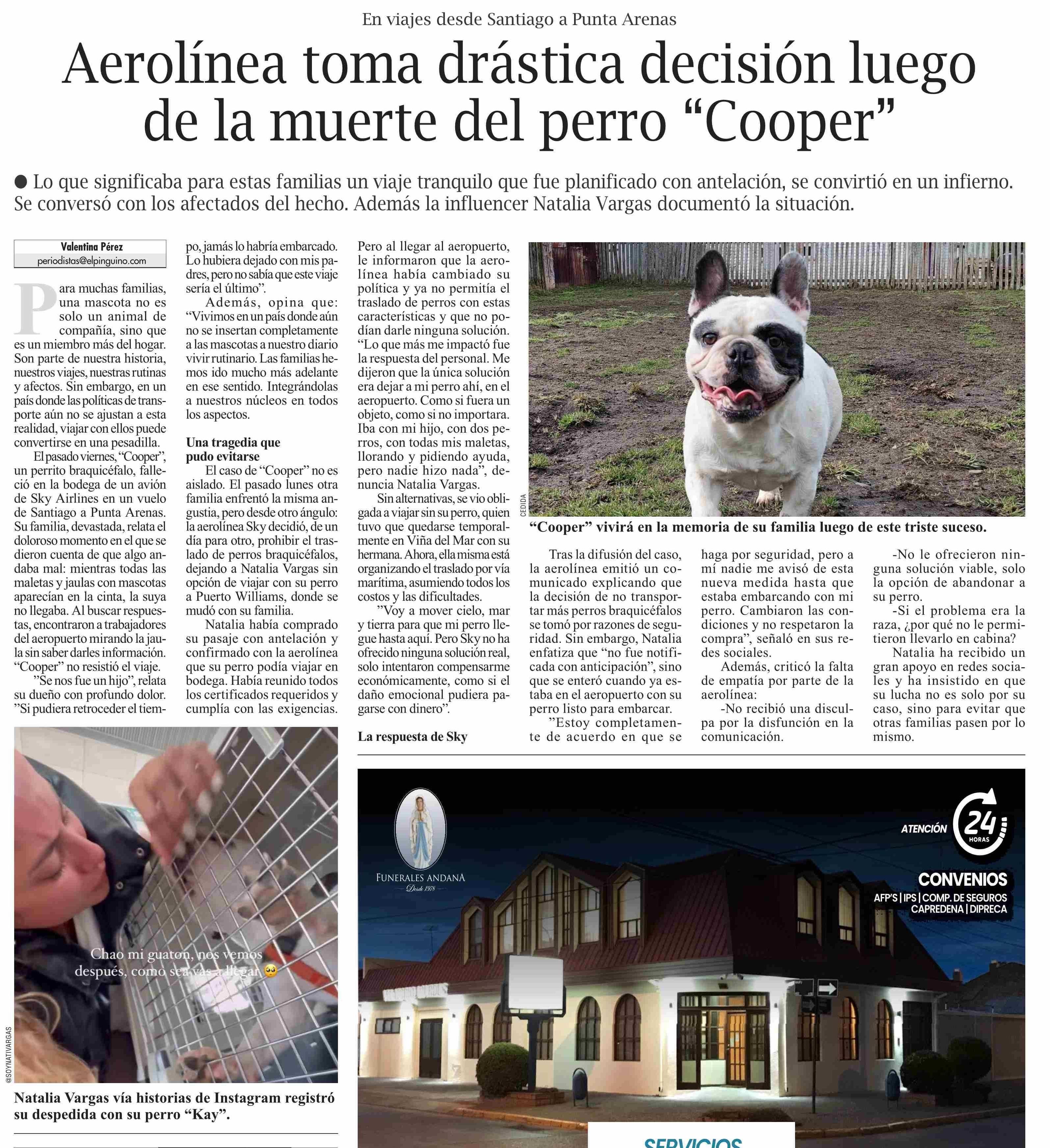 Aerolínea toma drástica decisión luego de la muerte del perro “Cooper”