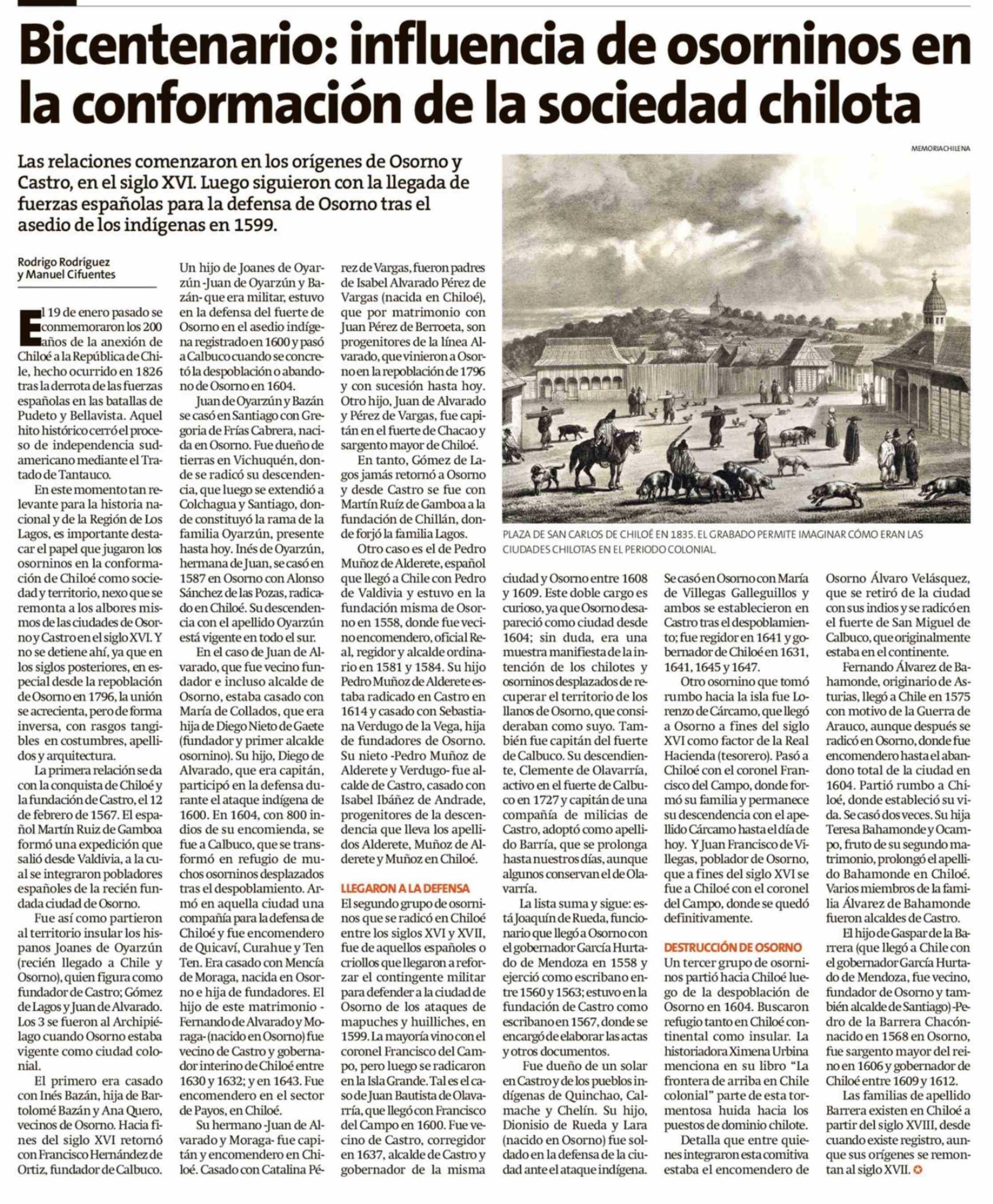 Bicentenario: influencia de osorninos en la conformación de la sociedad chilota