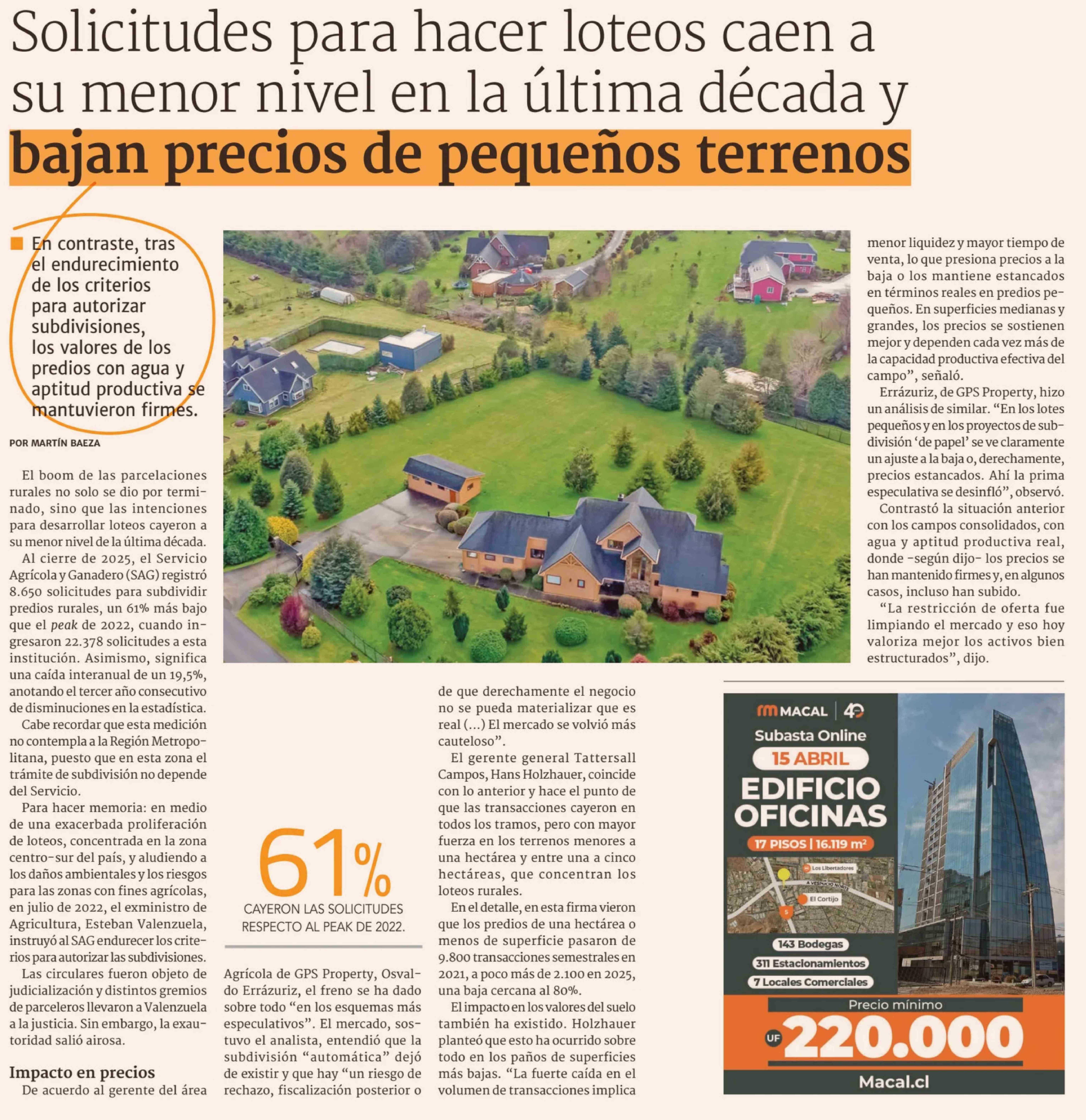 Solicitudes para hacer loteos caen a su menor nivel en la última década y bajan precios de pequeños terrenos