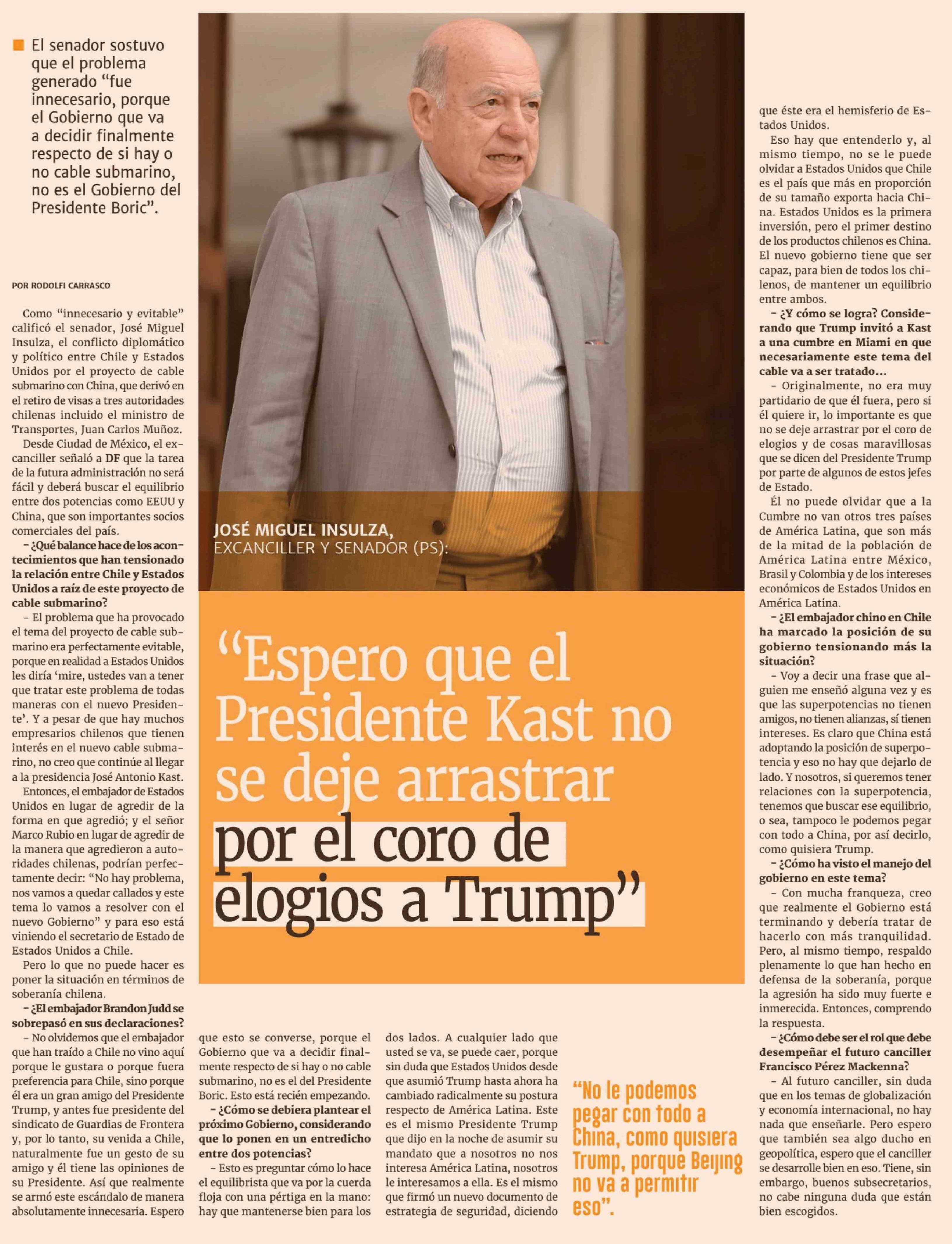 "Espero que el Presidente Kast no se deje arrastrar por el coro de elogios a Trump"