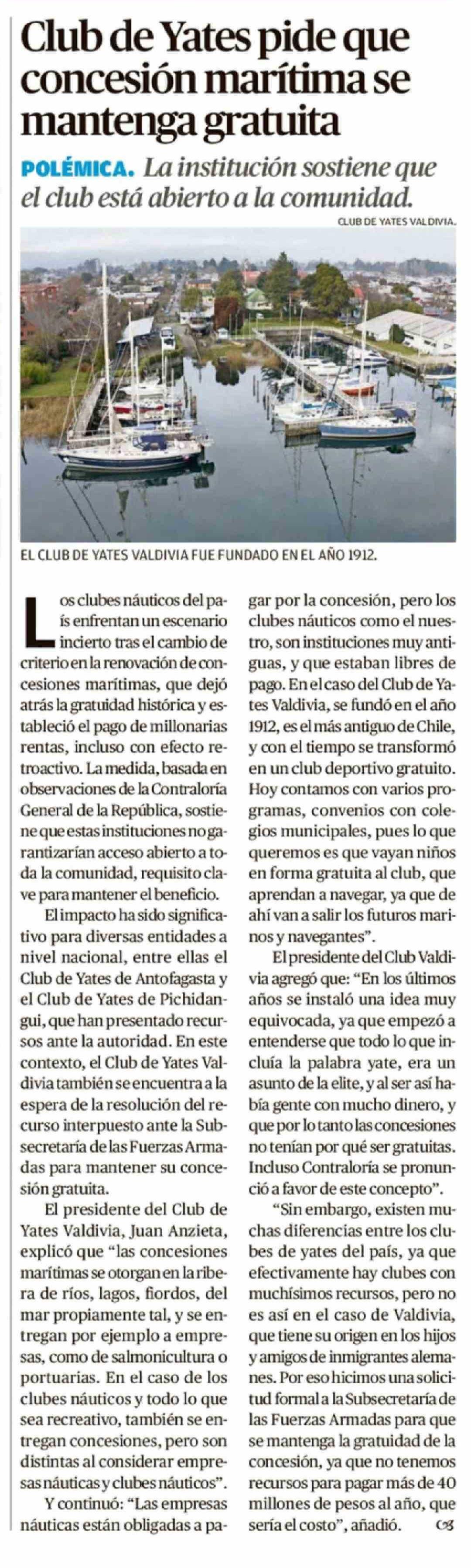 Club de Yates pide que concesión marítima se mantenga gratuita