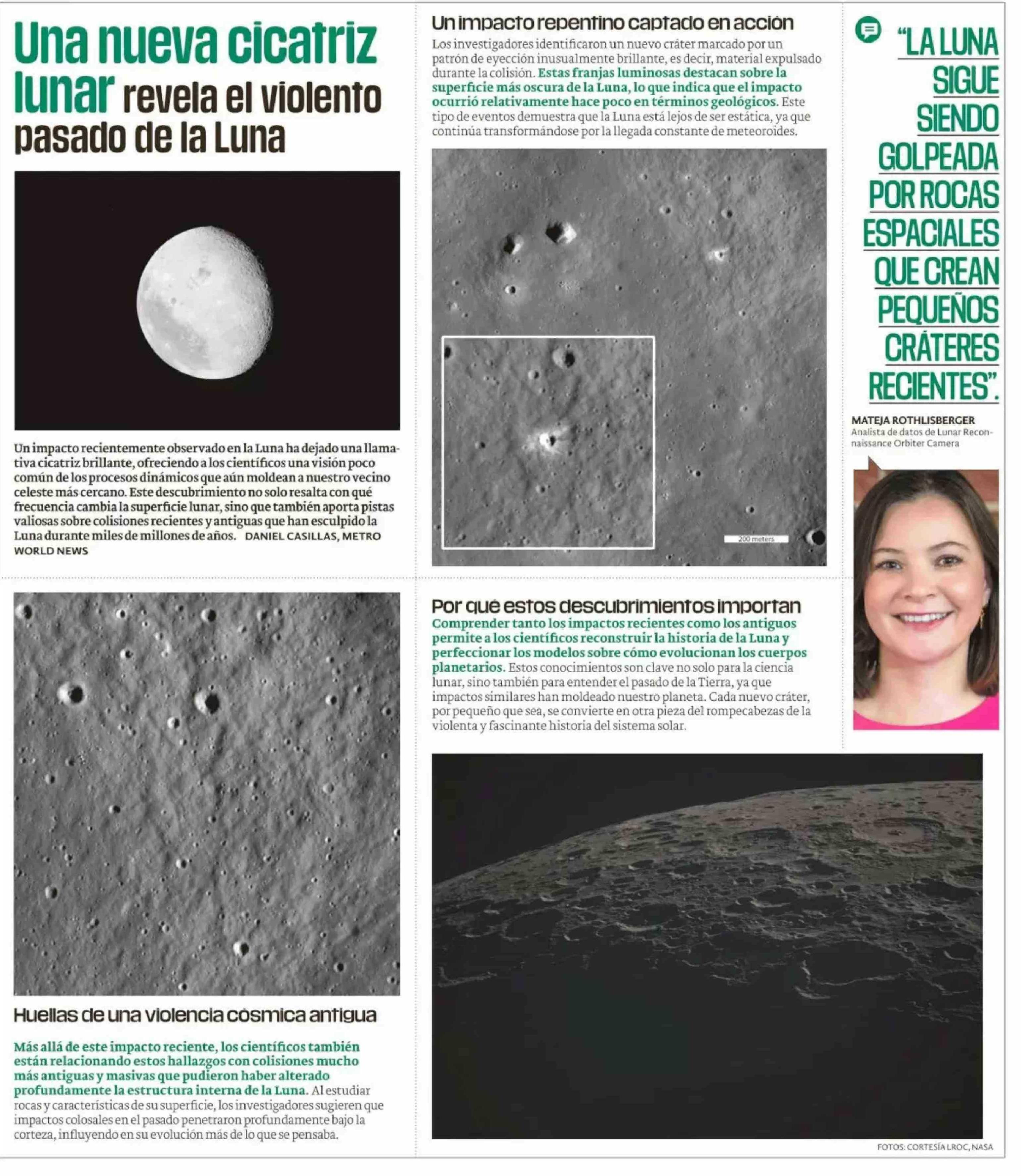 Una nueva cicatriz lunar revela el violento pasado de la Luna