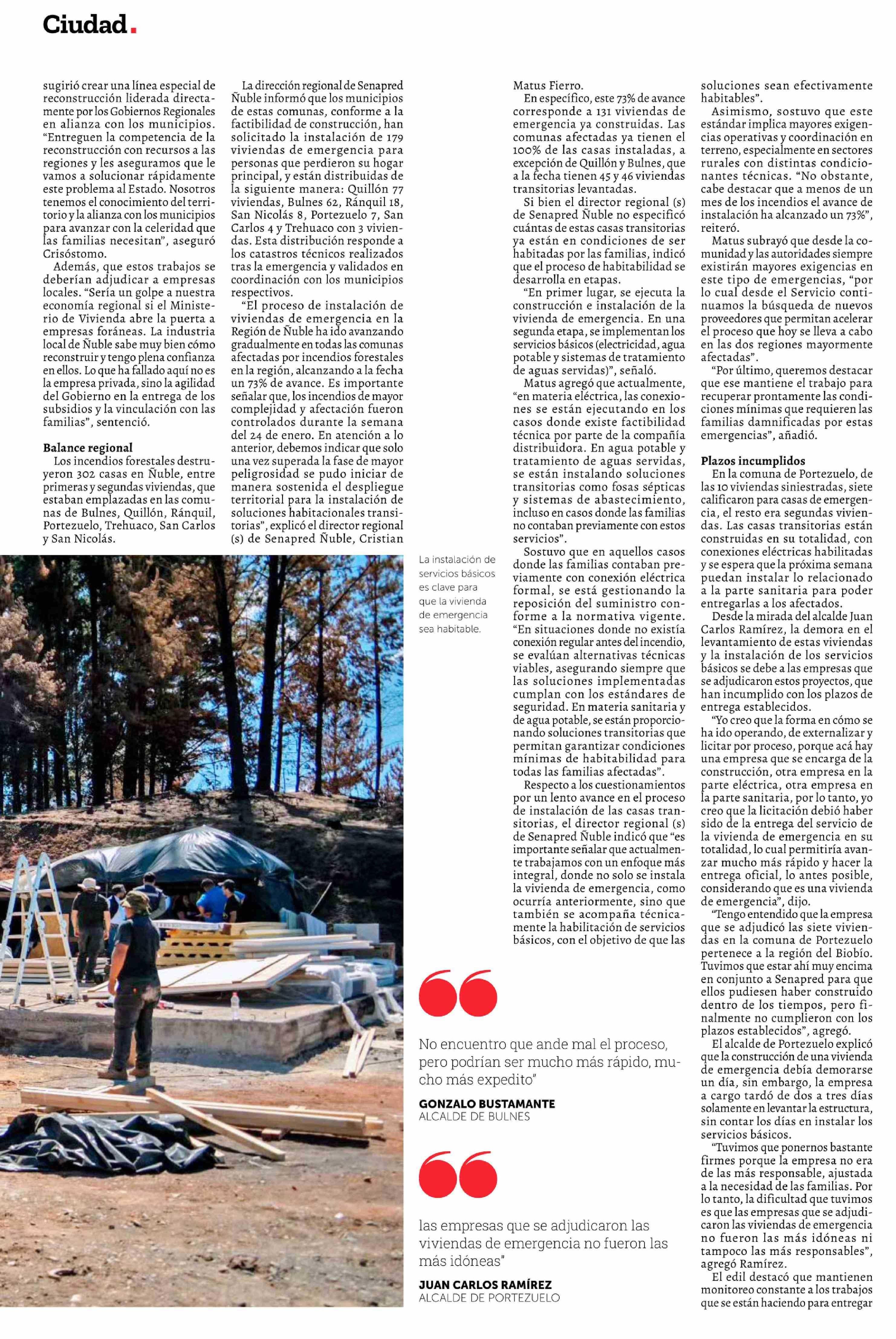 Lenta habilitación de servicios básicos retrasa uso de viviendas de emergencia en Ñuble tras incendios