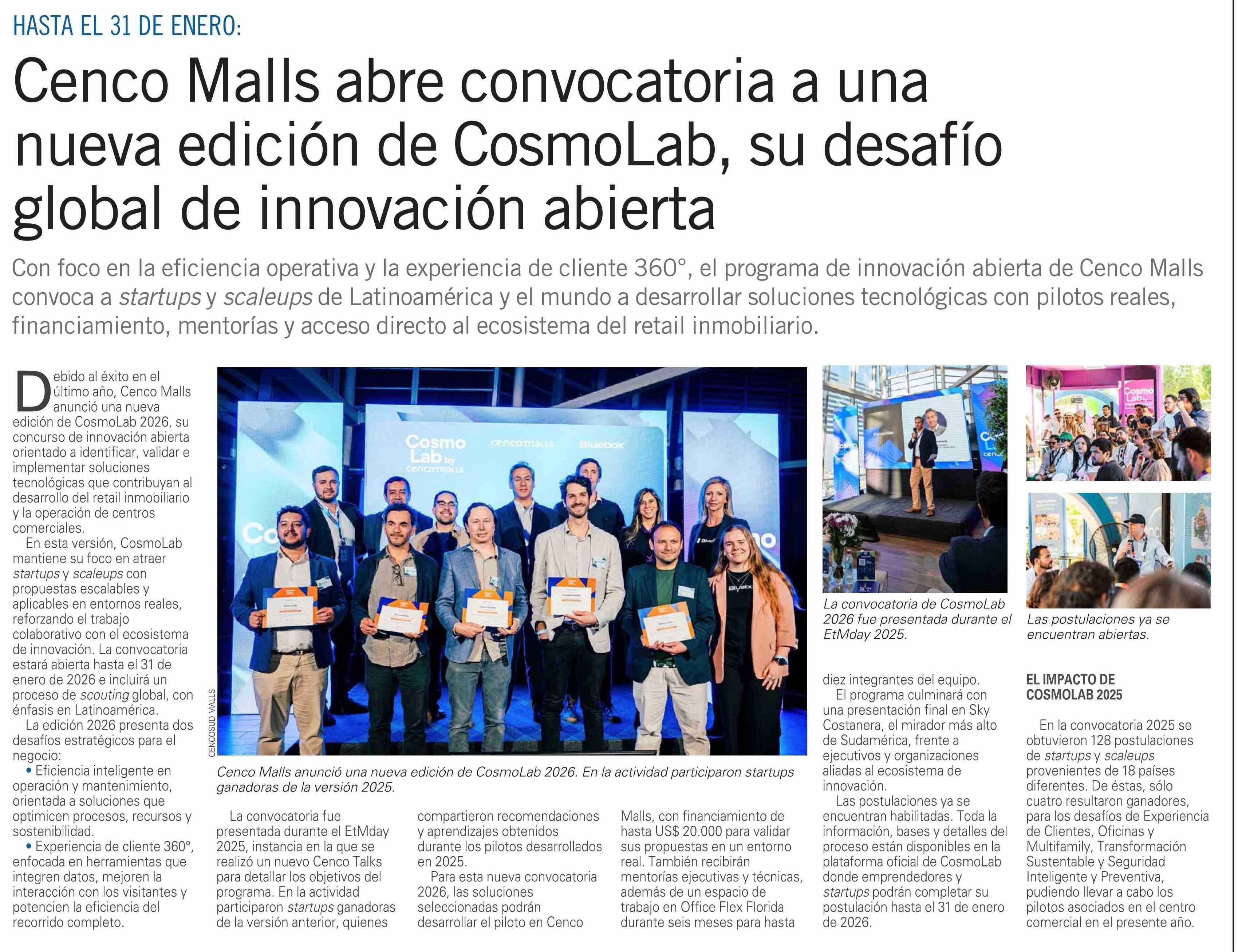 Cenco Malls abre convocatoria a una nueva edición de CosmoLab, su desafío global de innovación abierta
