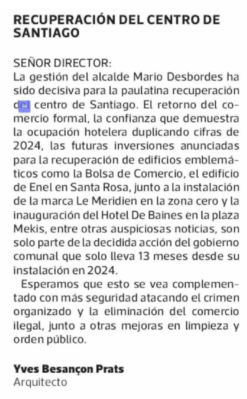 Cartas: RECUPERACIÓN DEL CENTRO DE SANTIAGO