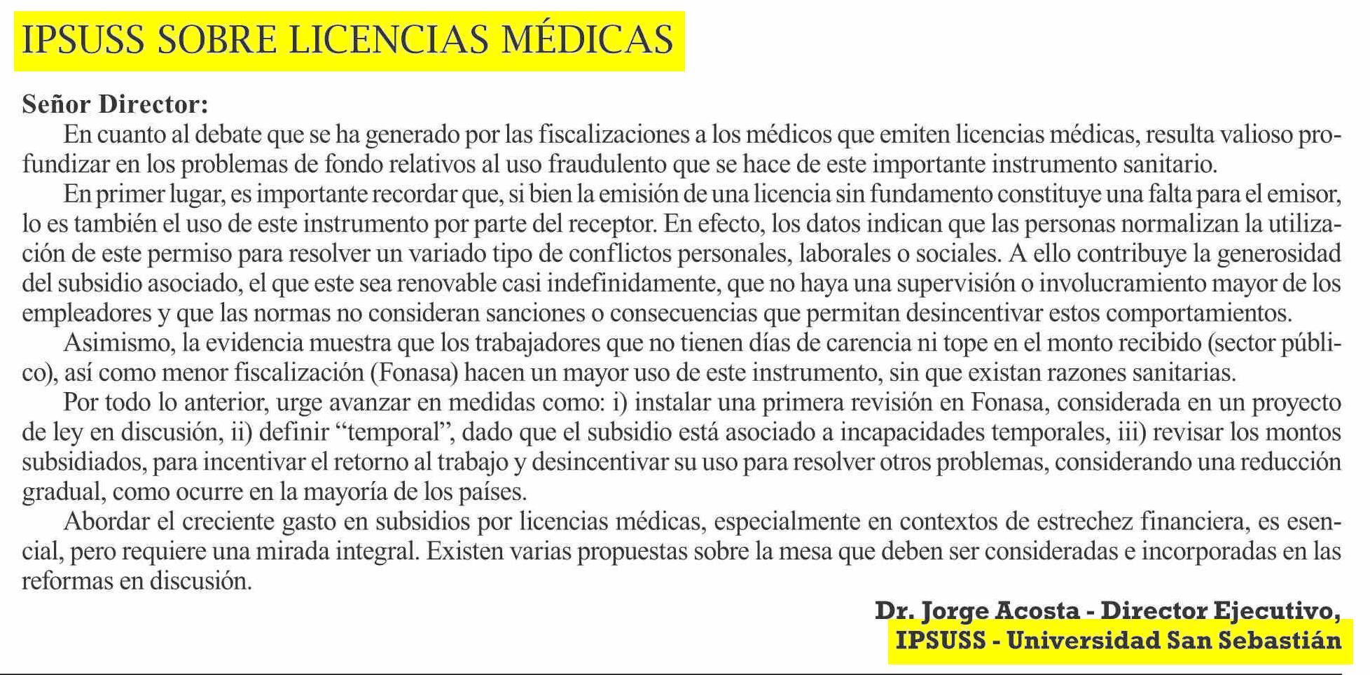 Cartas: IPSUSS SOBRE LICENCIAS MÉDICAS