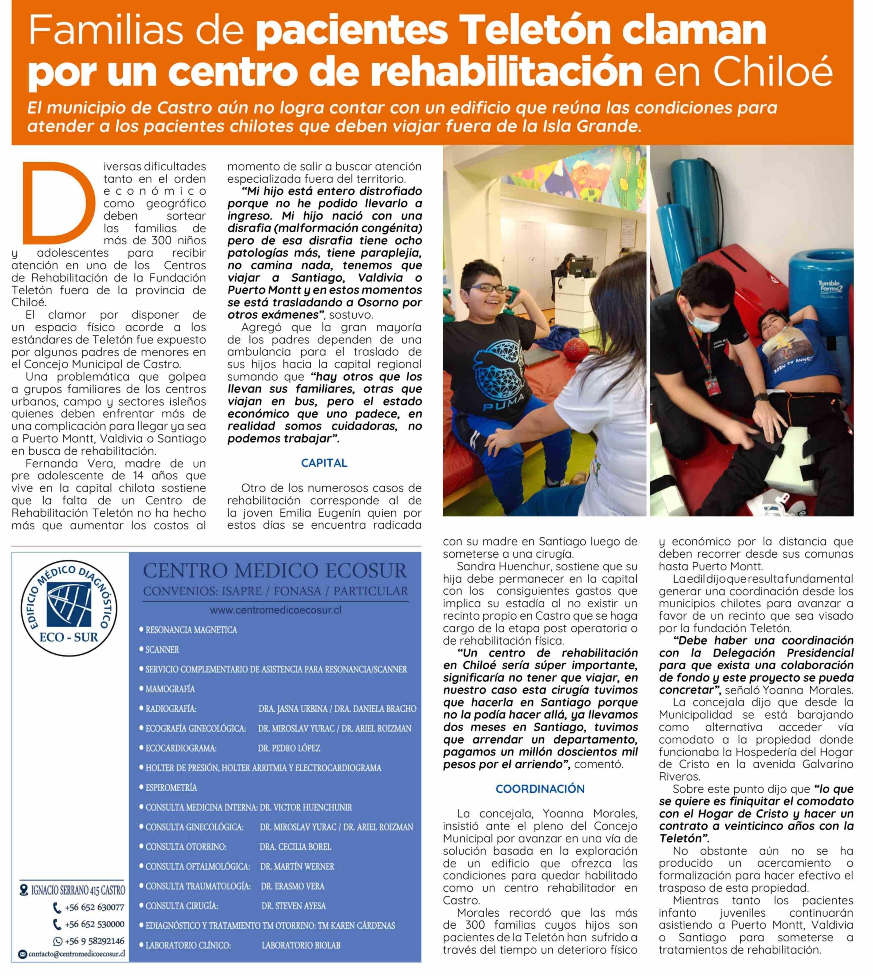 Familias de pacientes Teletón claman por un centro de rehabilitación en Chiloé