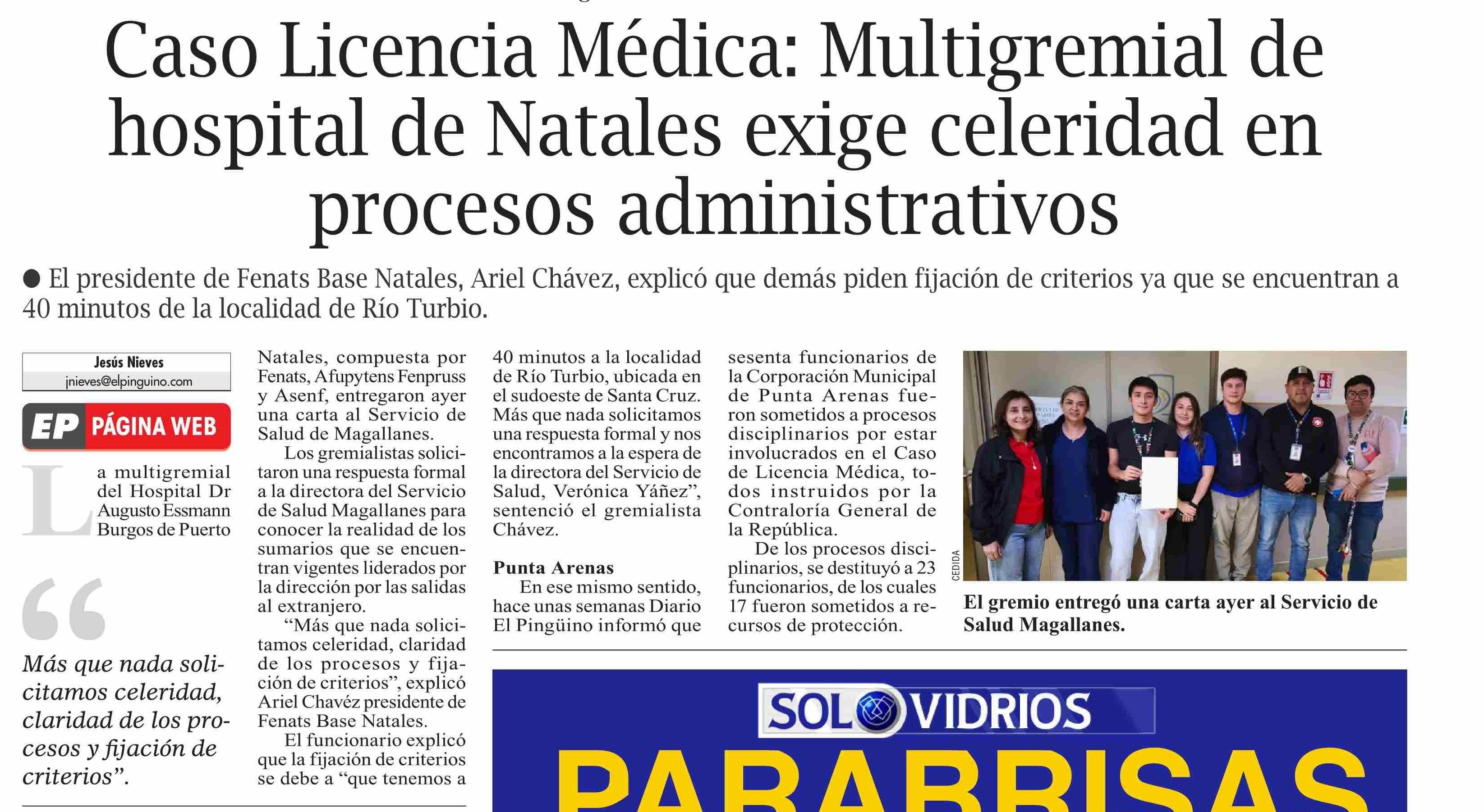 Caso Licencia Médica: Multigremial de hospital de Natales exige celeridad en procesos administrativos