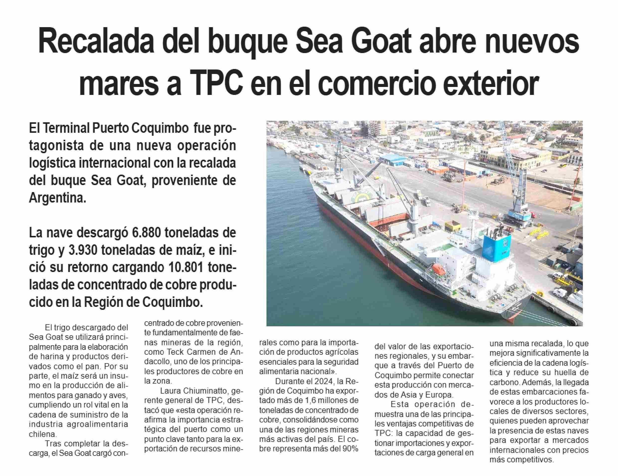 Título: Recalada del buque Sea Goat abre nuevos mares a TPC en el comercio exterior