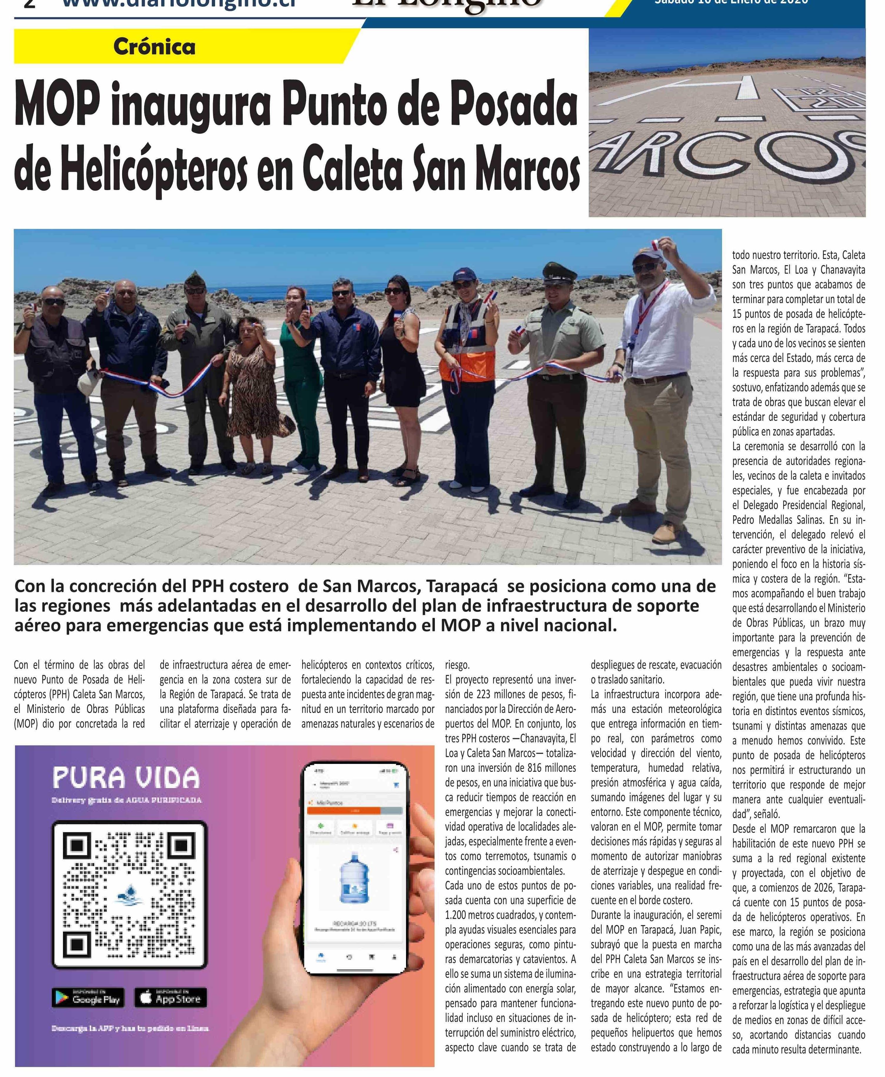 MOP inaugura Punto de Posada de Helicópteros en Caleta San Marcos
