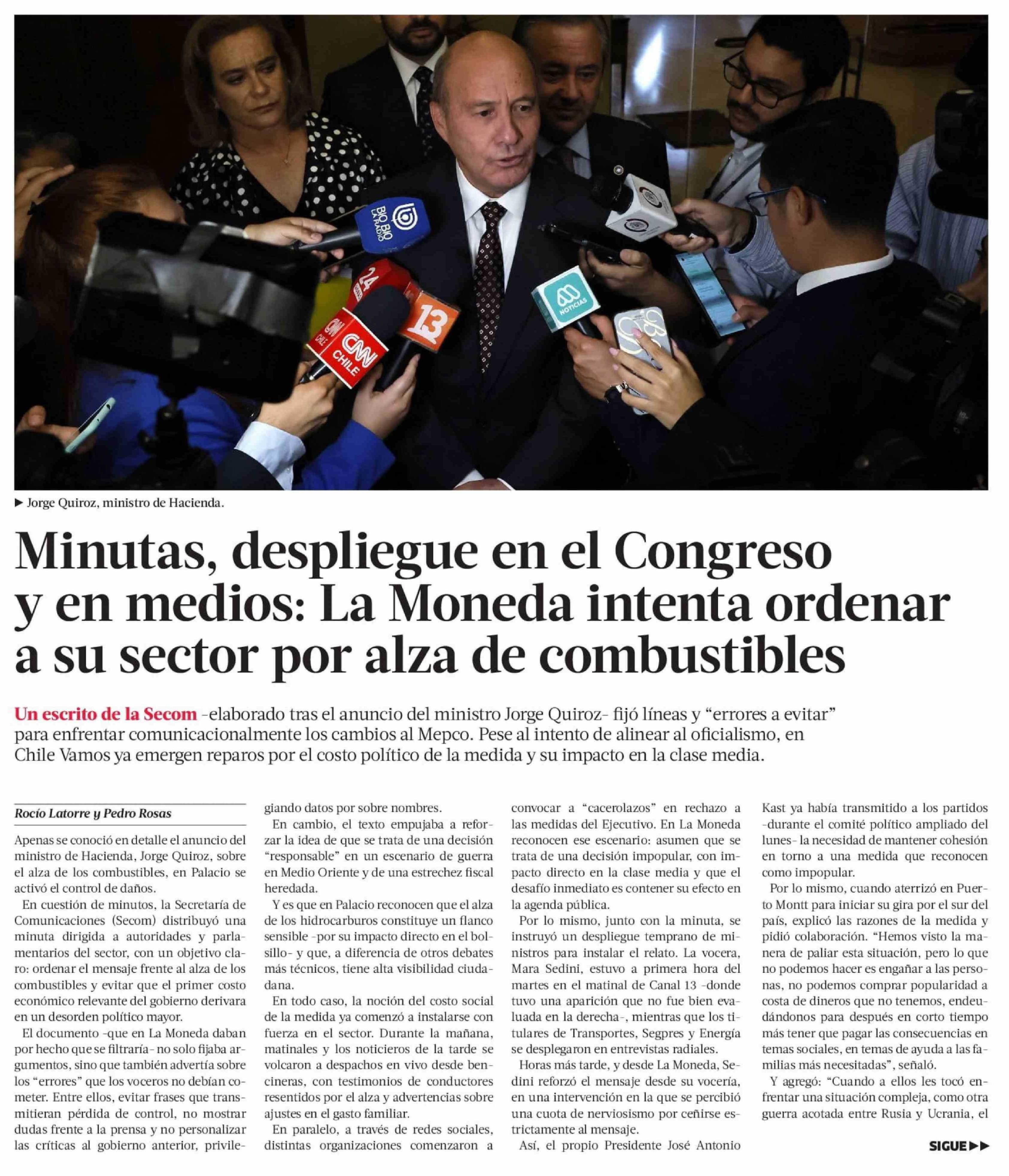 Minutas, despliegue en el Congreso y en medios: La Moneda intenta ordenar a su sector por alza de combustibles