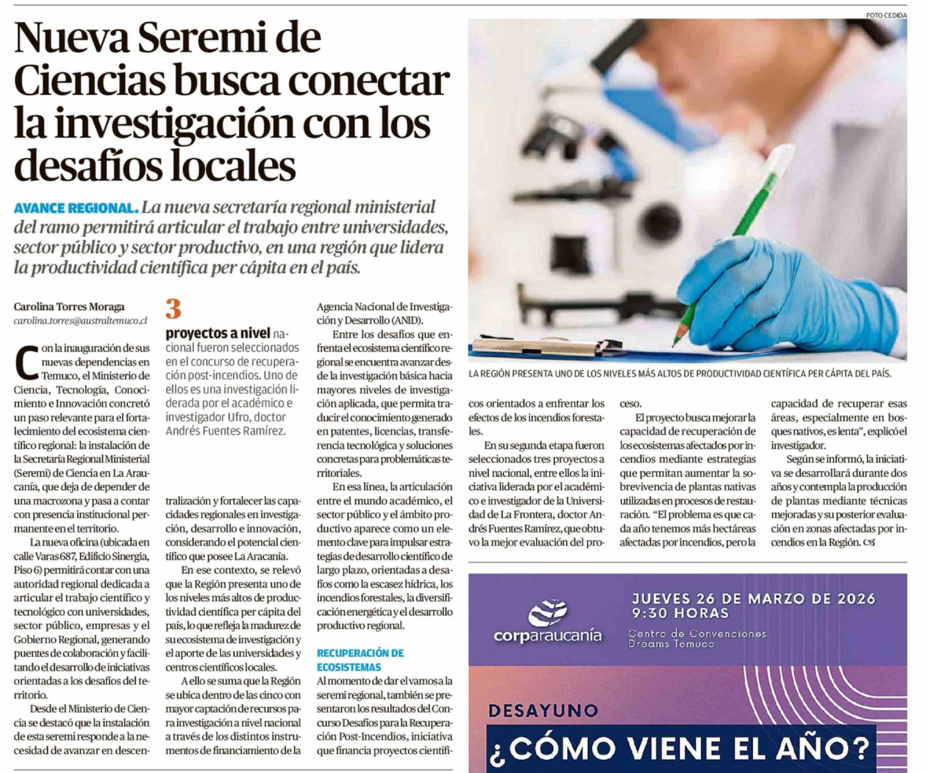 Nueva Seremi de Ciencias busca conectar la investigación con los desafíos locales