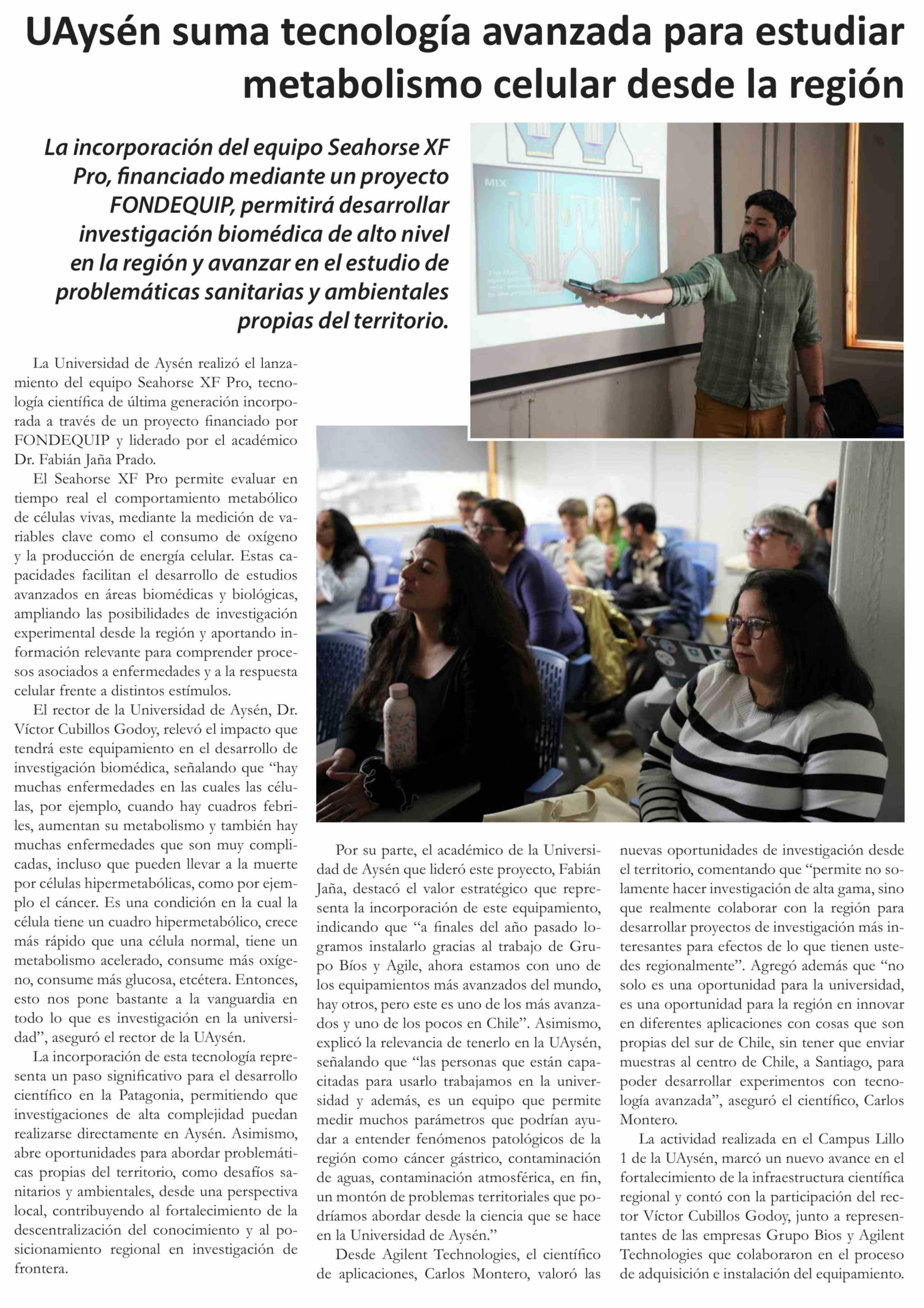 Título: UAysén suma tecnología avanzada para estudiar metabolismo celular desde la región