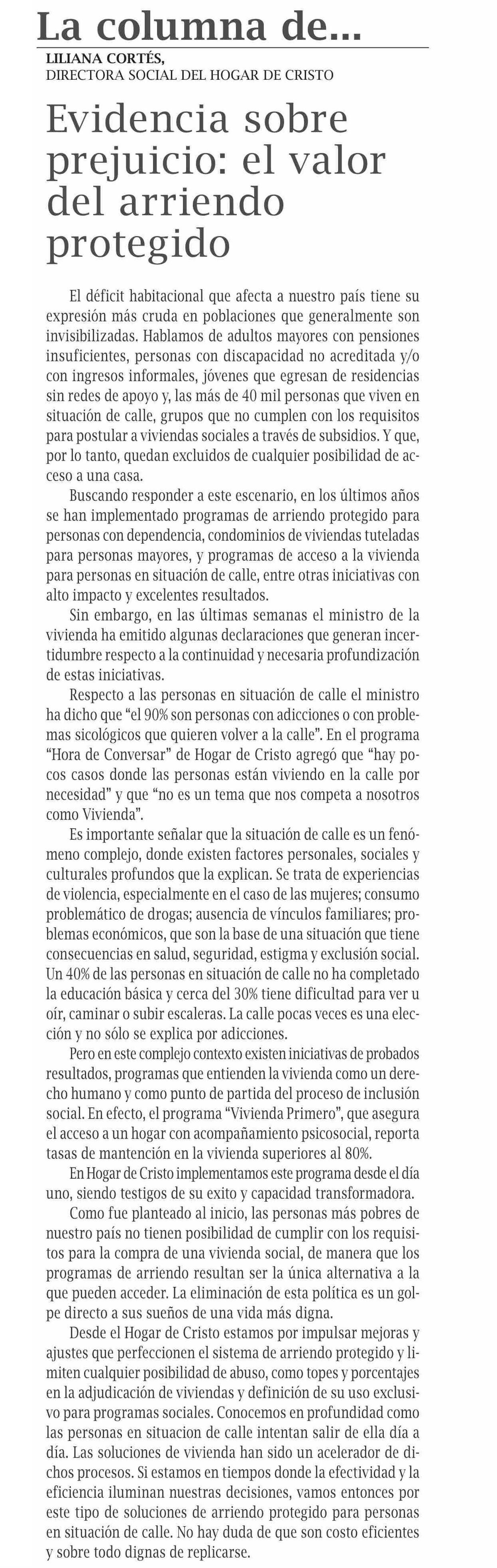 COLUMNAS DE OPINIÓN: Evidencia sobre prejuico: el valor del arriendo protegido