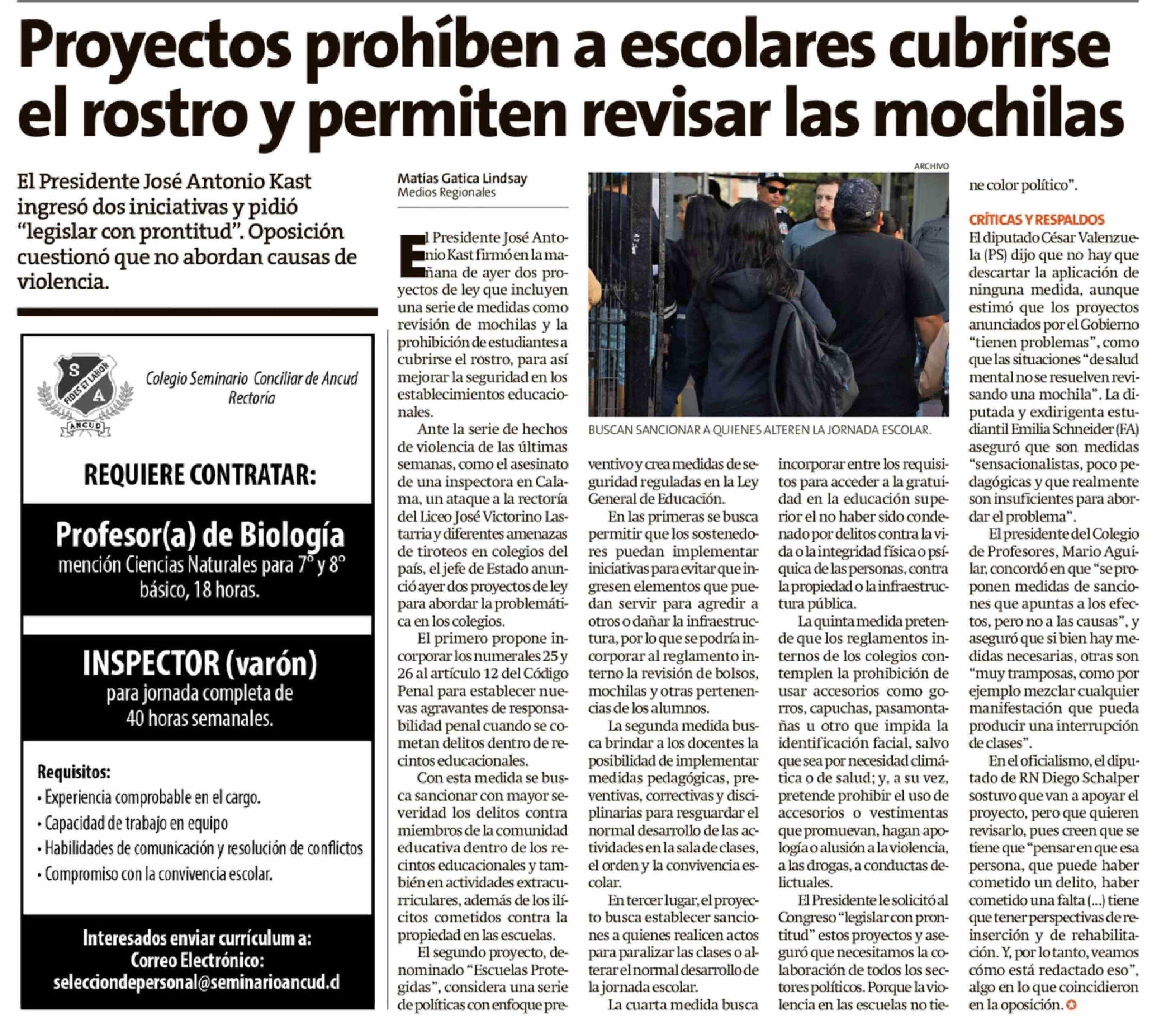 Proyectos prohíben a escolares cubrirse el rostro y permiten revisar las mochilas