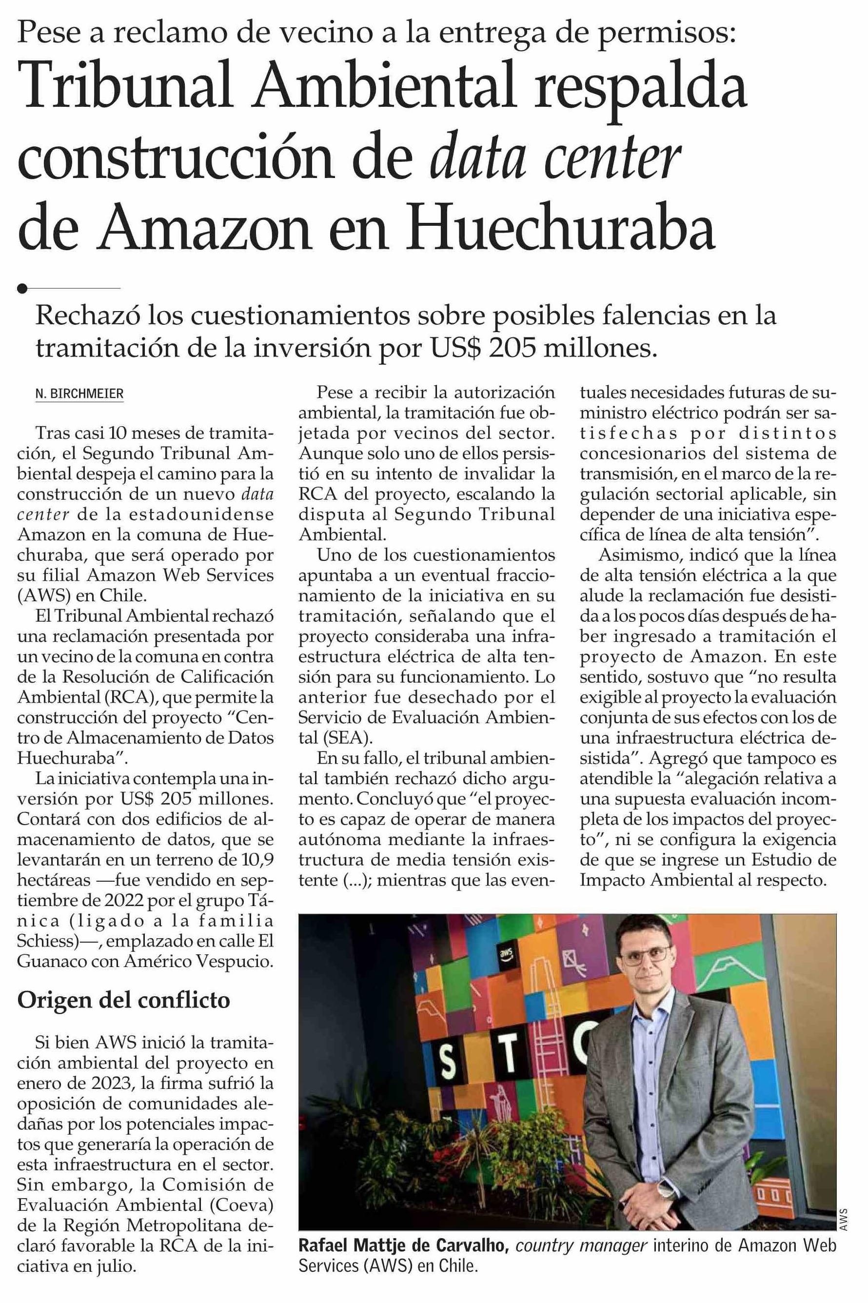 Tribunal Ambiental respalda construcción de data center de Amazon en Huechuraba
