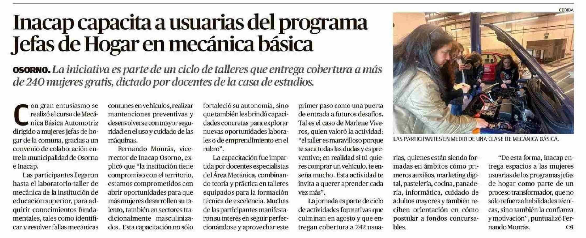 Inacap capacita a usuarias del programa Jefas de Hogar en mecánica básica