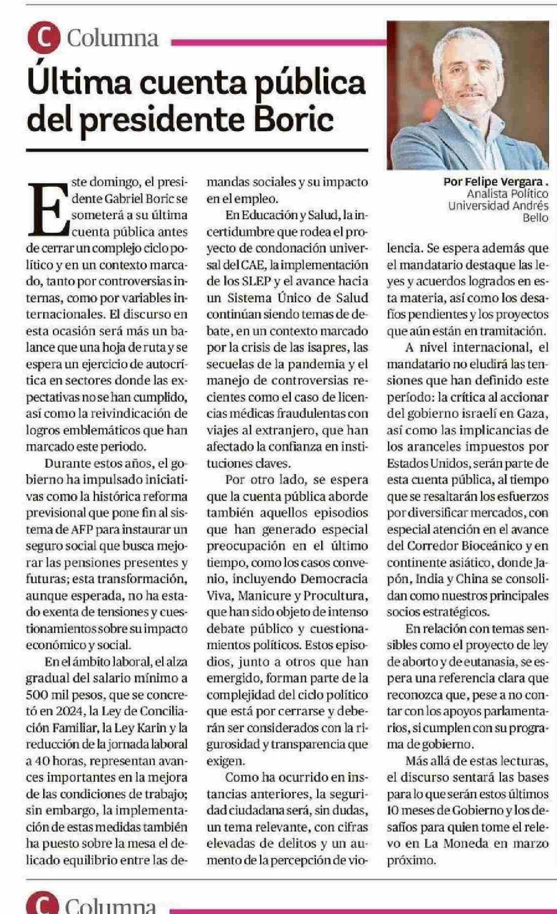 COLUMNAS DE OPINIÓN: Ultima cuenta pública del presidente Boric