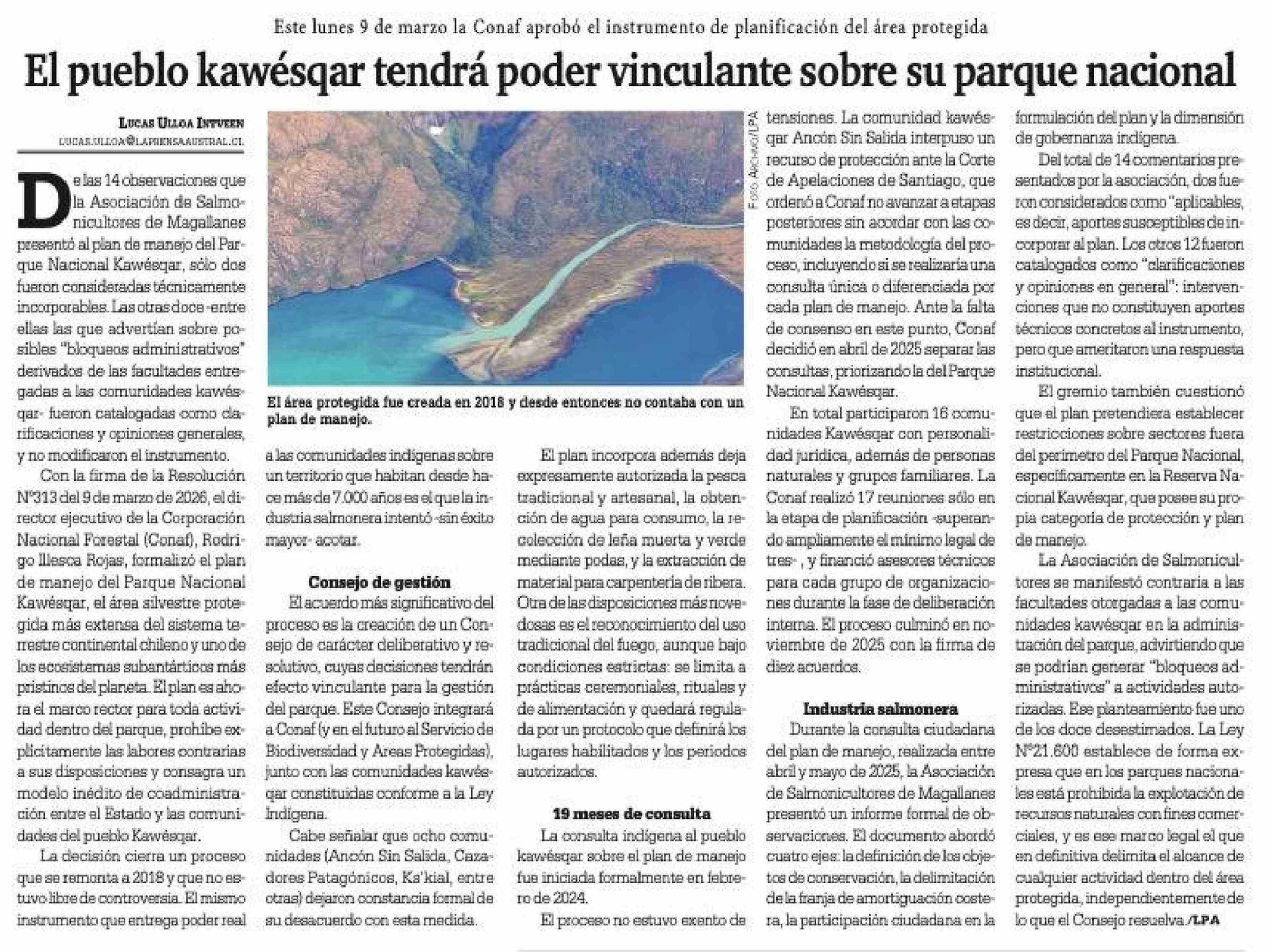 El pueblo kawésqar tendrá poder vinculante sobre su parque nacional