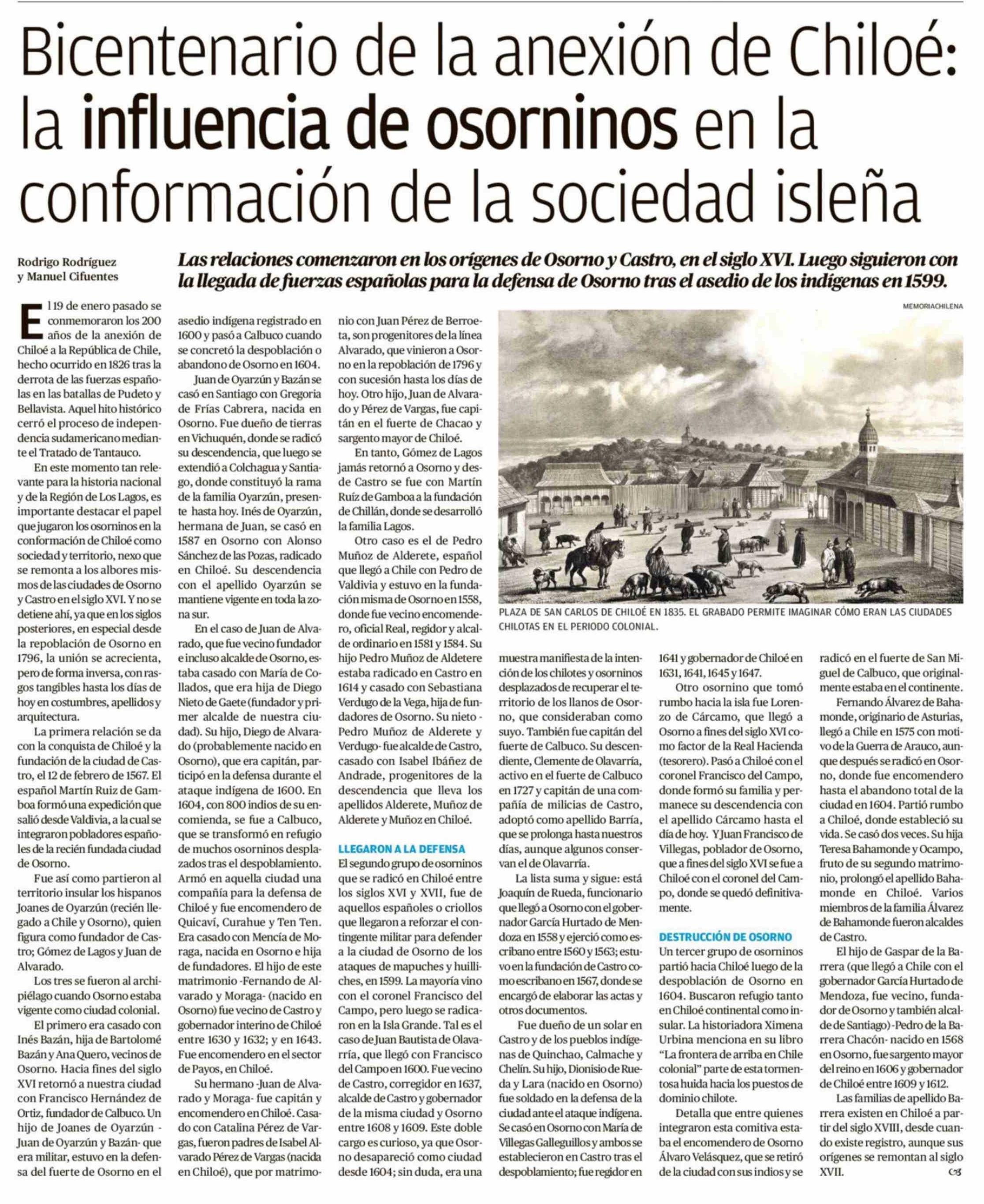 Bicentenario de la anexión de Chiloé: la influencia de osorninos en la conformación de la sociedad isleña