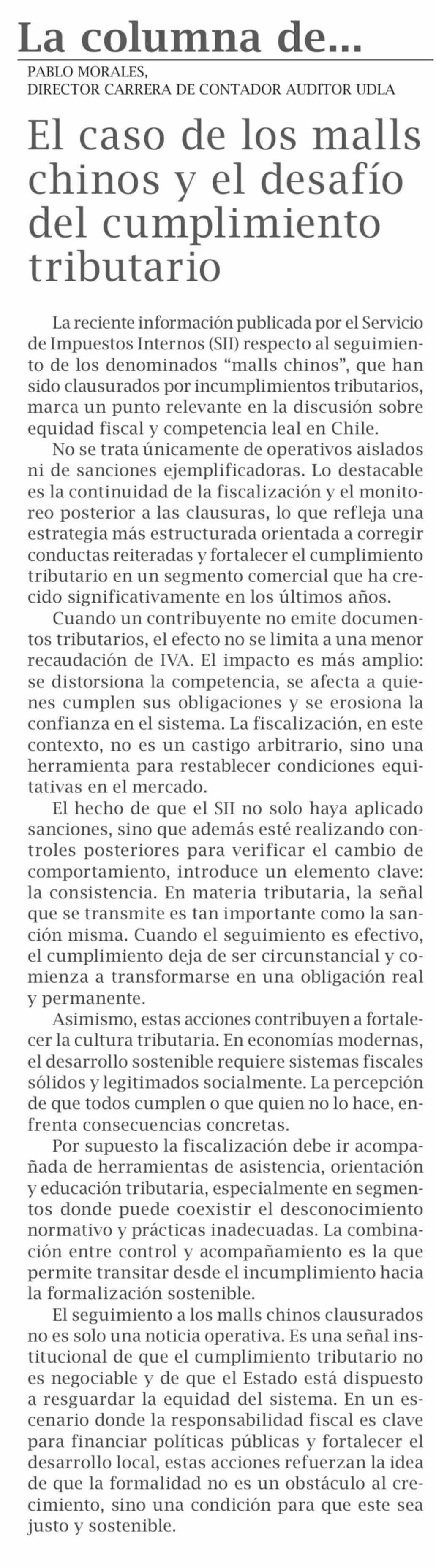 Columnas de Opinión: El caso de los malls chinos y el desafío del cumplimiento tributario