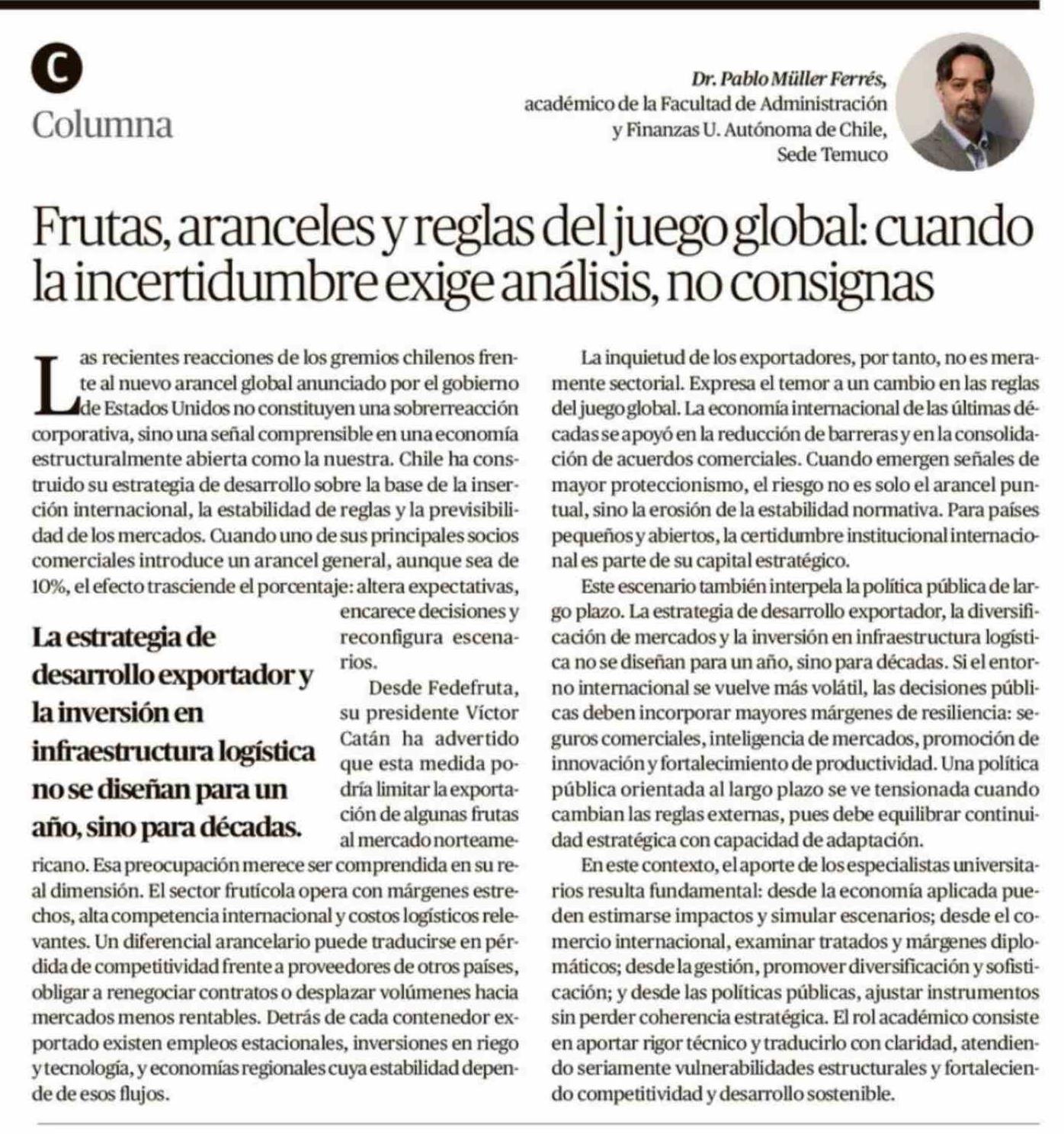 Columnas de Opinión: Frutas, aranceles y reglas del juego global: cuando la incertidumbre exige análisis, no consignas