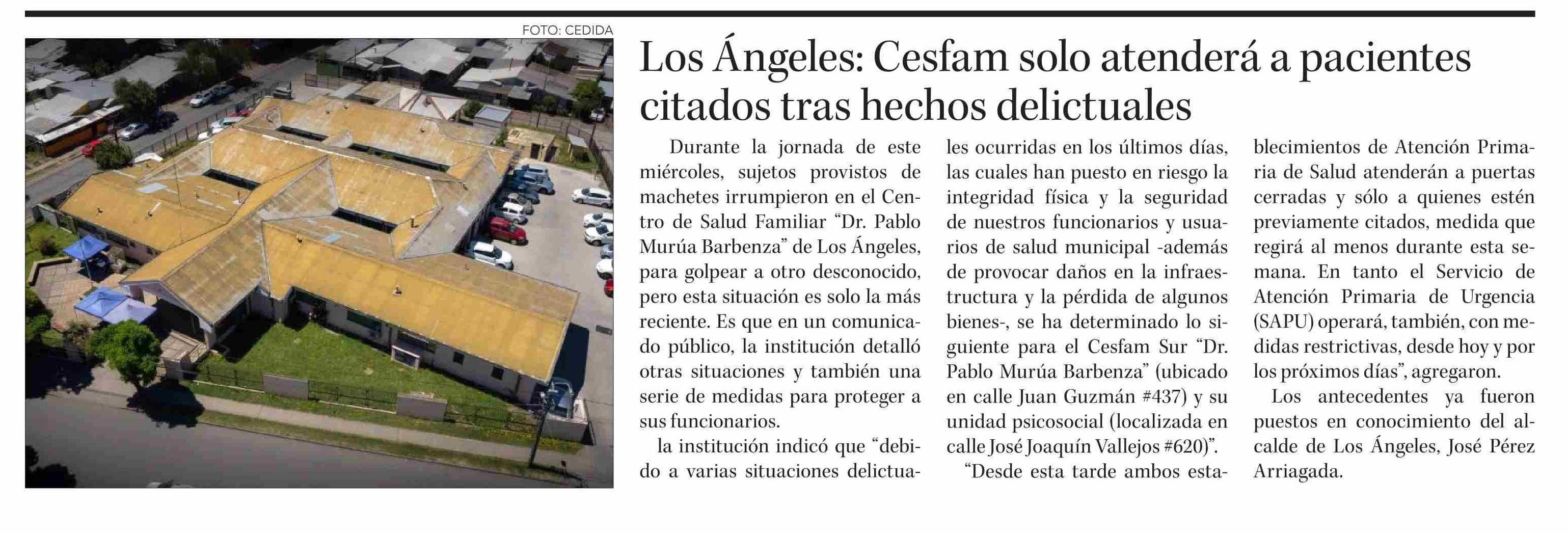 Los Ángeles: Cesfam solo atenderá a pacientes citados tras hechos delictuales