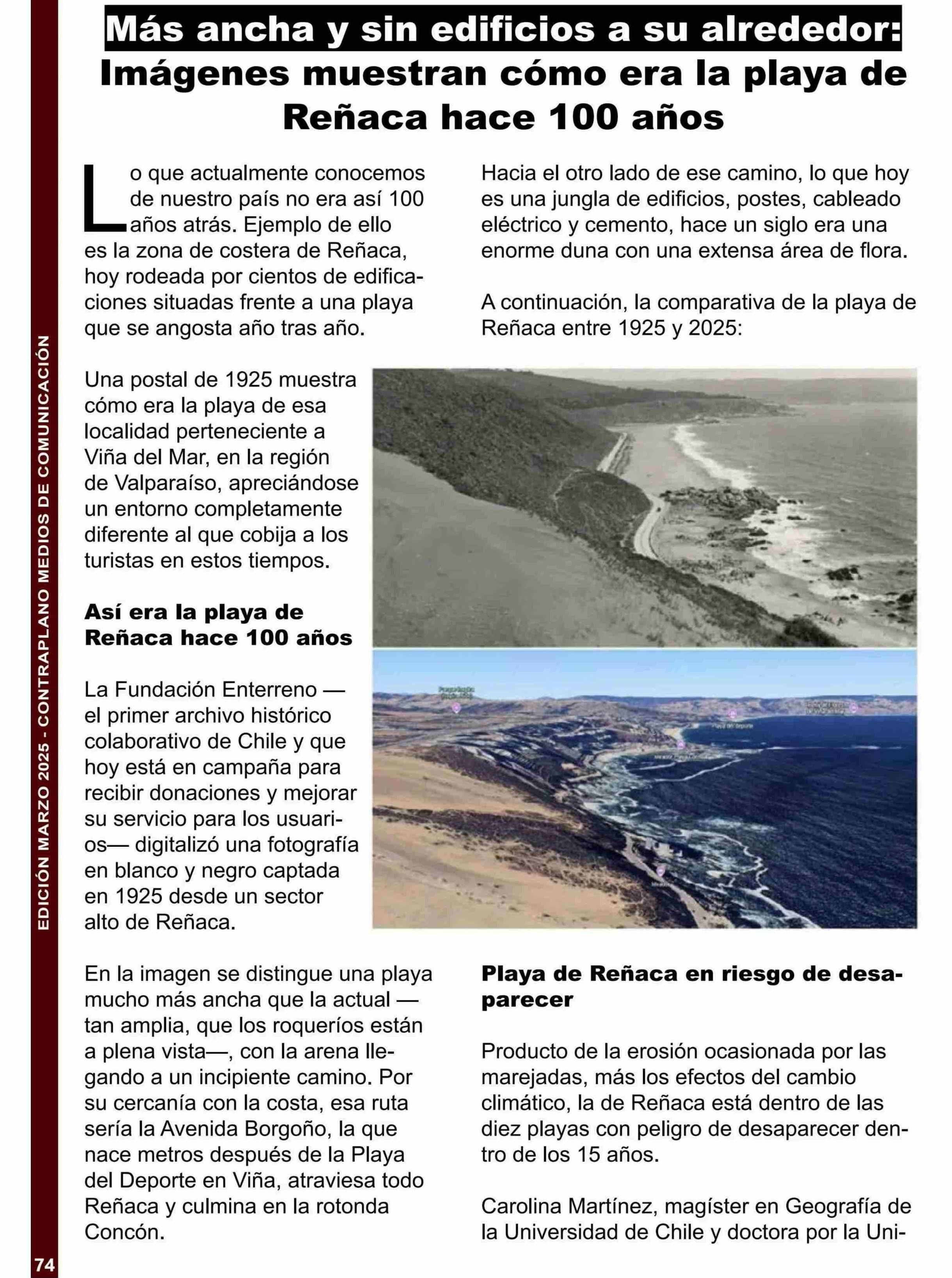 | Título: | Más ancha y sin edificios a su alrededor : Imágenes muestran cómo era la playa de Reñaca hace 100 años |