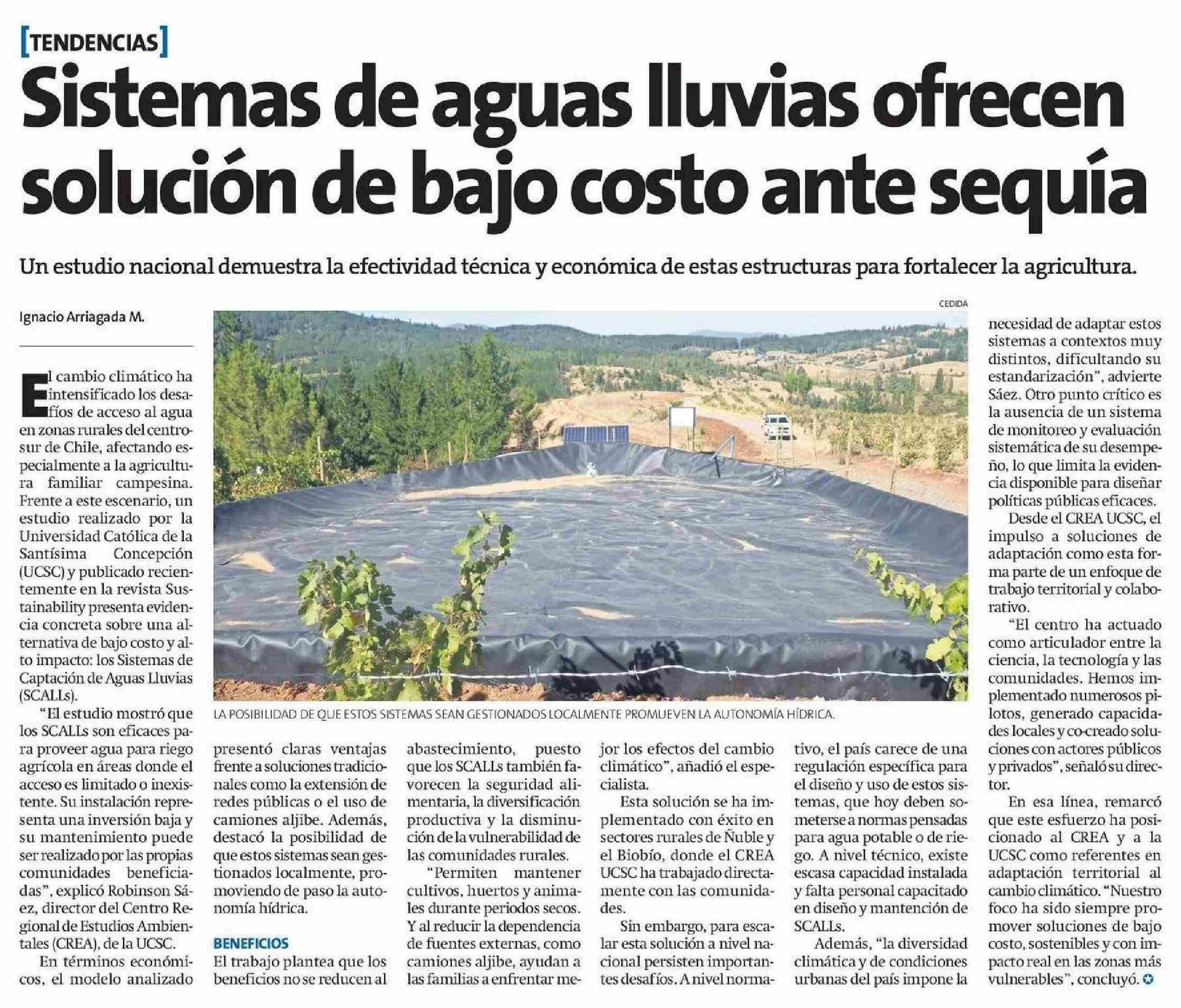 Sistemas de aguas lluvias ofrecen solución de bajo costo ante sequía