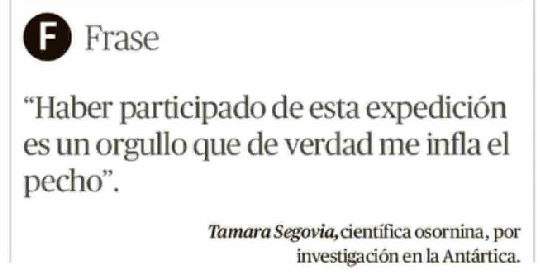 Tamara Segovia, científica osornina, por investigación en la Antártica.