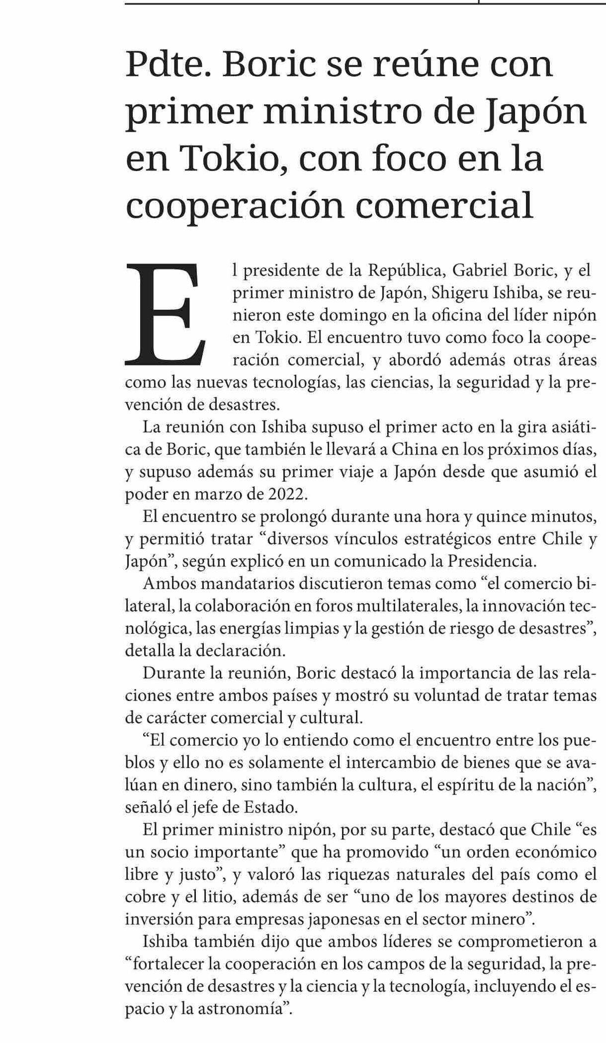 Pdte. Boric se reúne con primer ministro de Japón en Tokio, con foco en la cooperación comercial