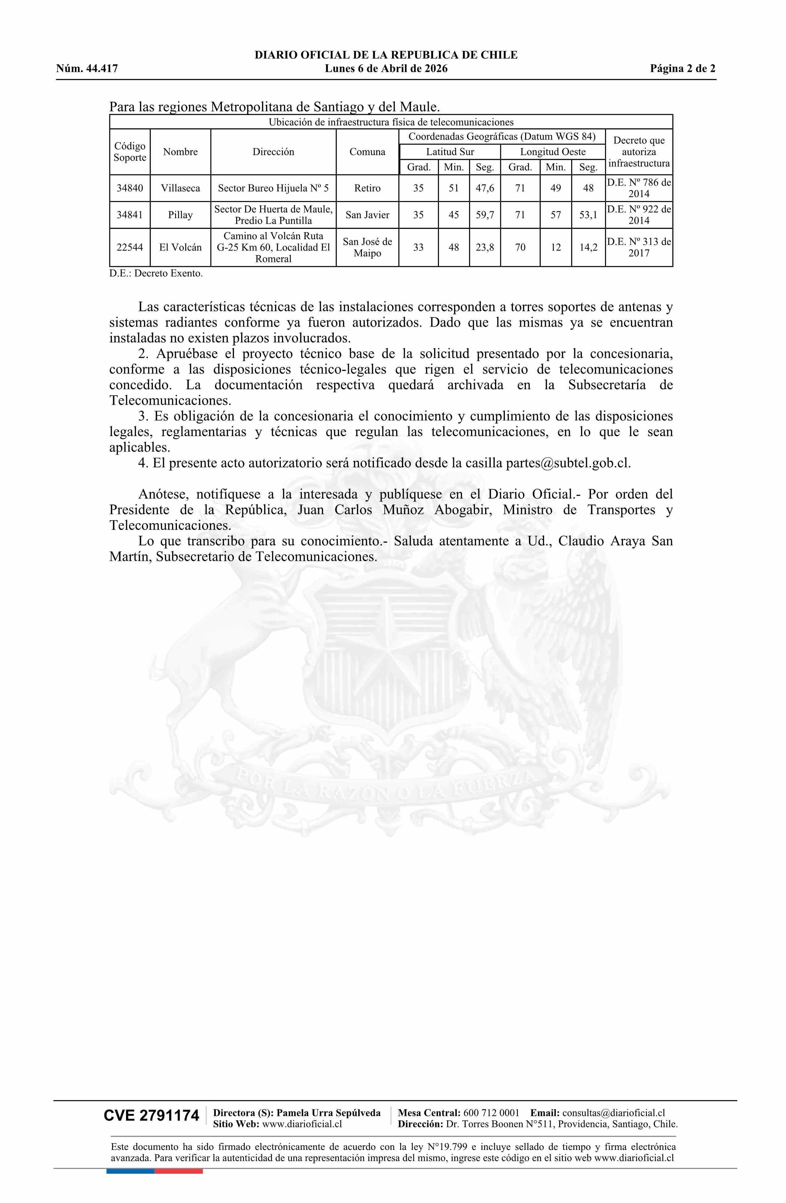 Fuente: Diario Oficial Edición Electrónica (Diario Oficial de Chile - 2 Normas Particulares) Página(s): 23-24
