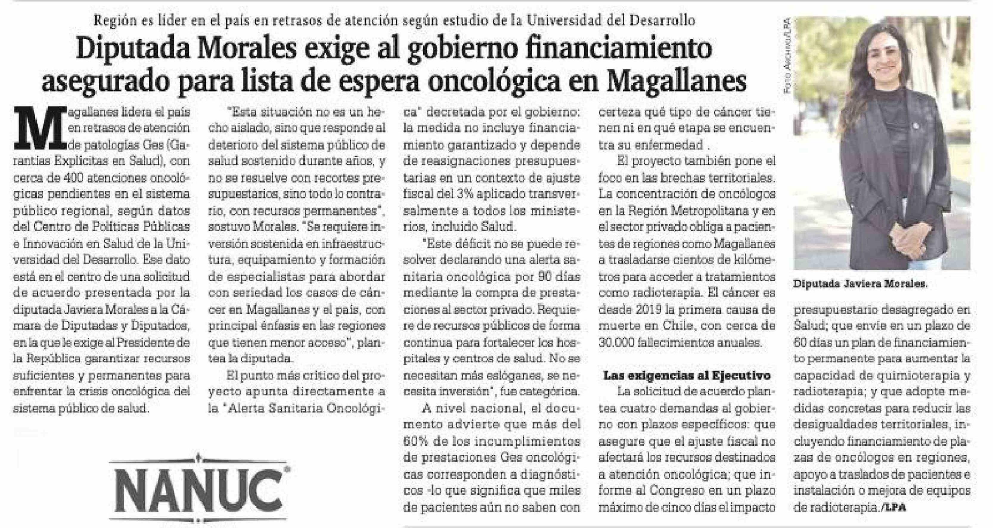 Título: Diputada Morales exige al gobierno financiamiento asegurado para lista de espera oncológica en Magallanes