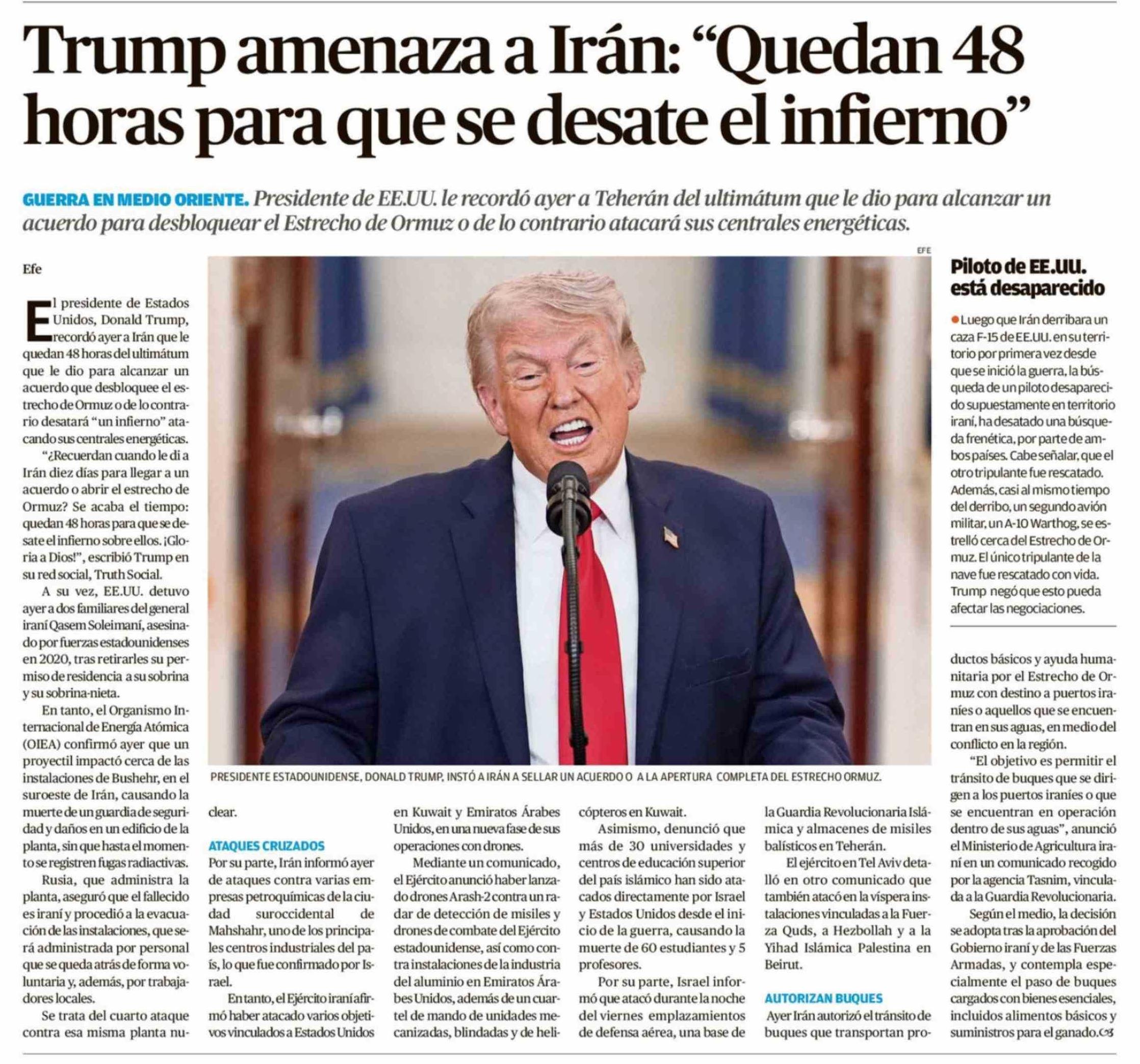 Trump amenaza a Irán: "Quedan 48 horas para que se desate el infierno"