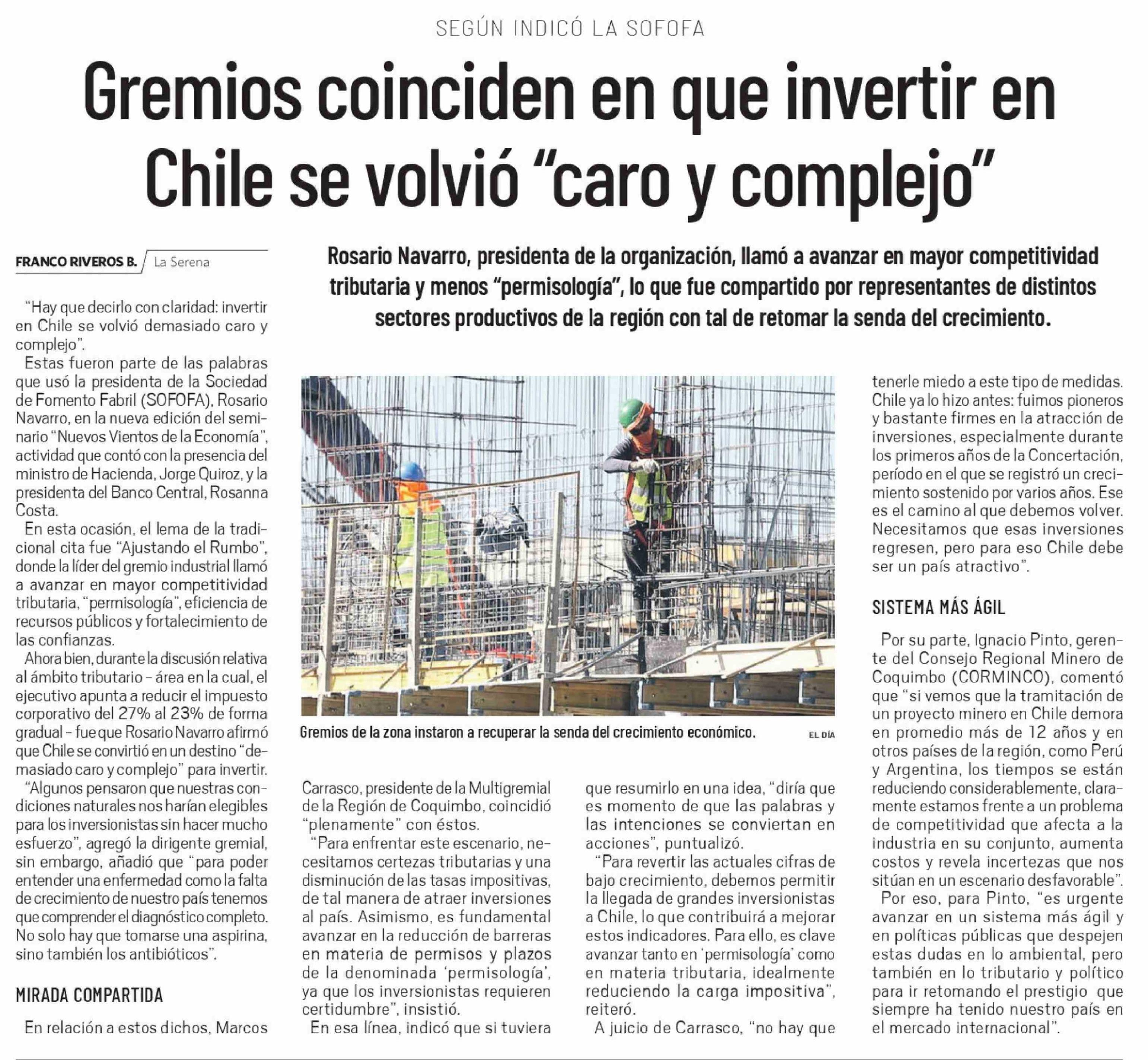 Título: Gremios coinciden en que invertir en Chile se volvió "caro y complejo"