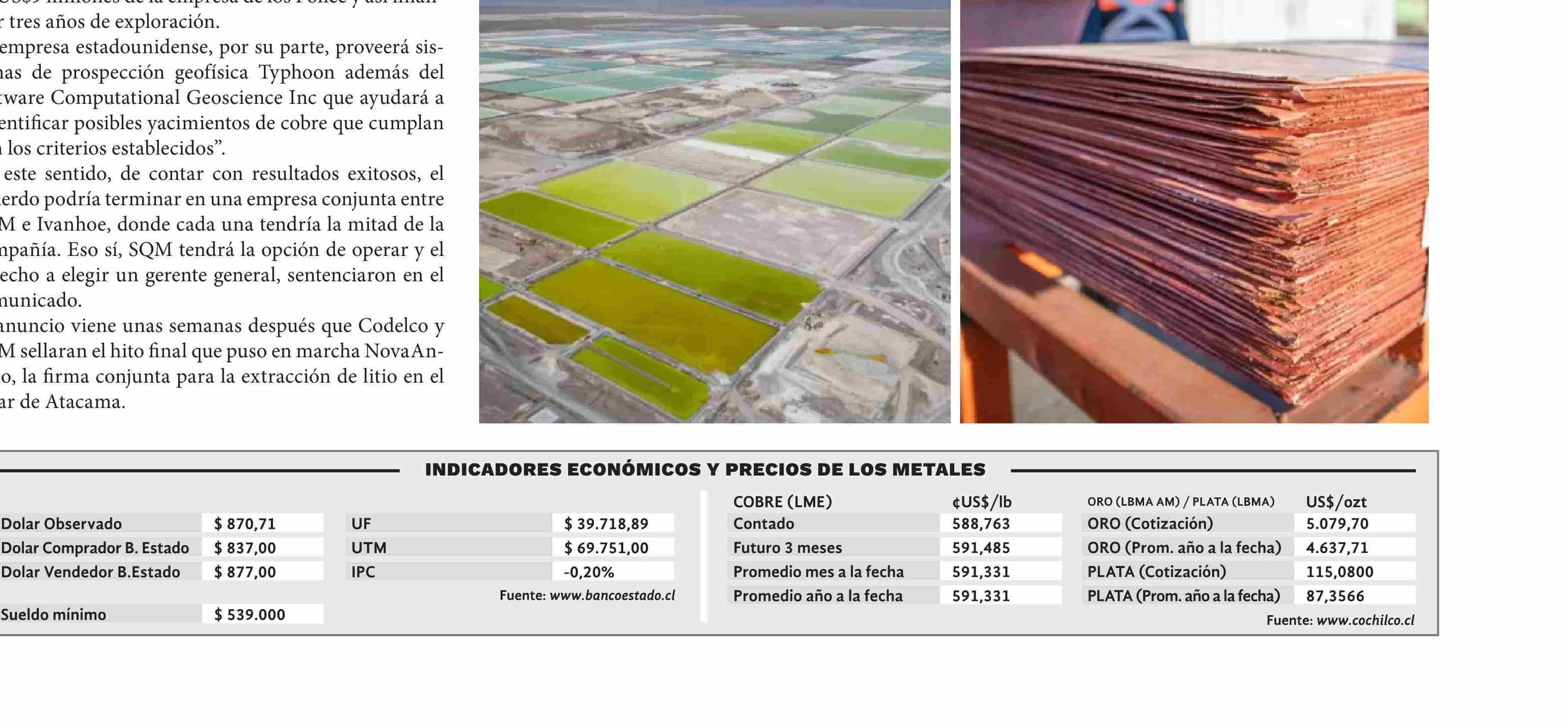 Del litio al cobre: SQM anuncia colaboración para buscar la presencia de metal rojo en sus terrenos