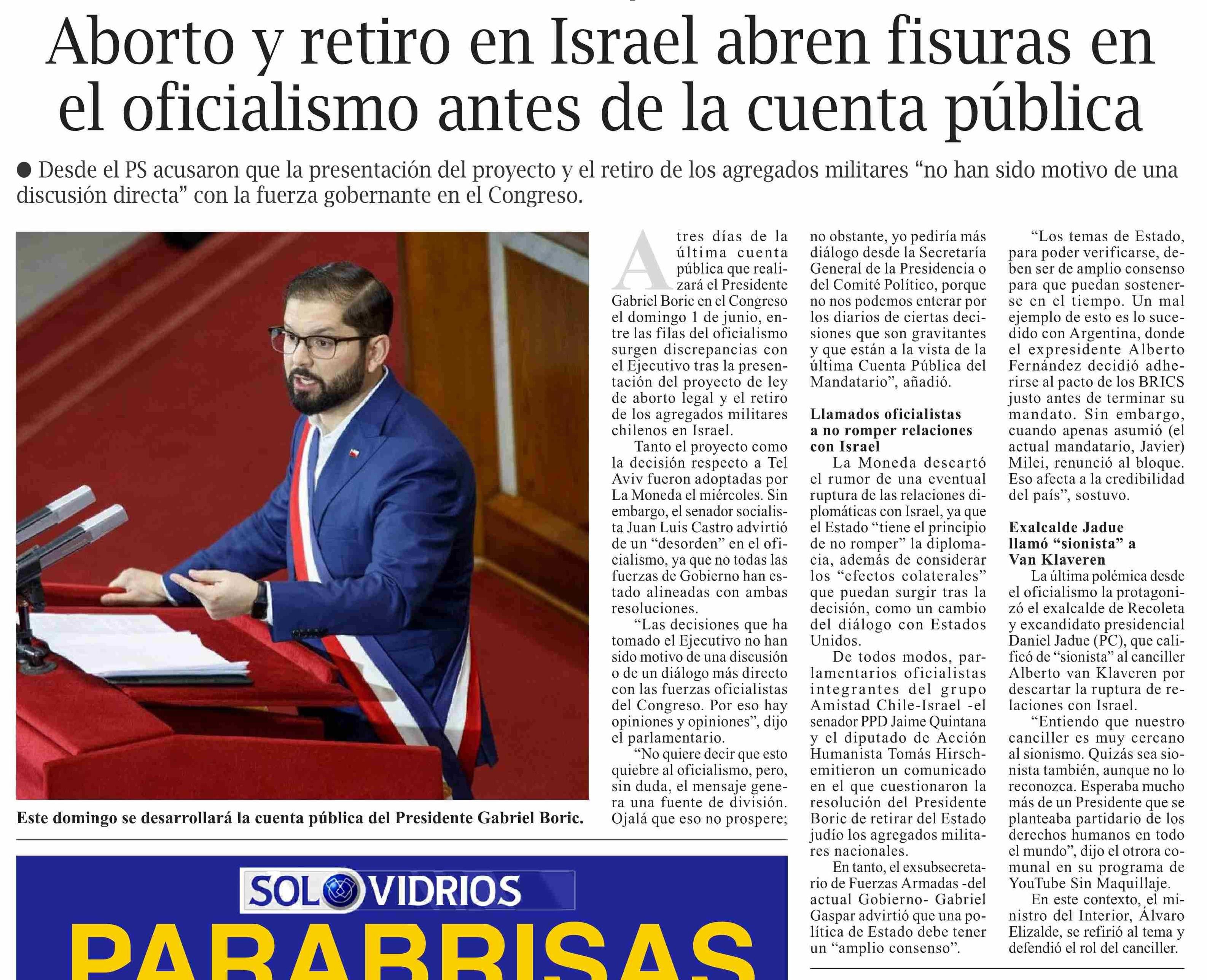 Aborto y retiro en Israel abren fisuras en el oficialismo antes de la cuenta pública