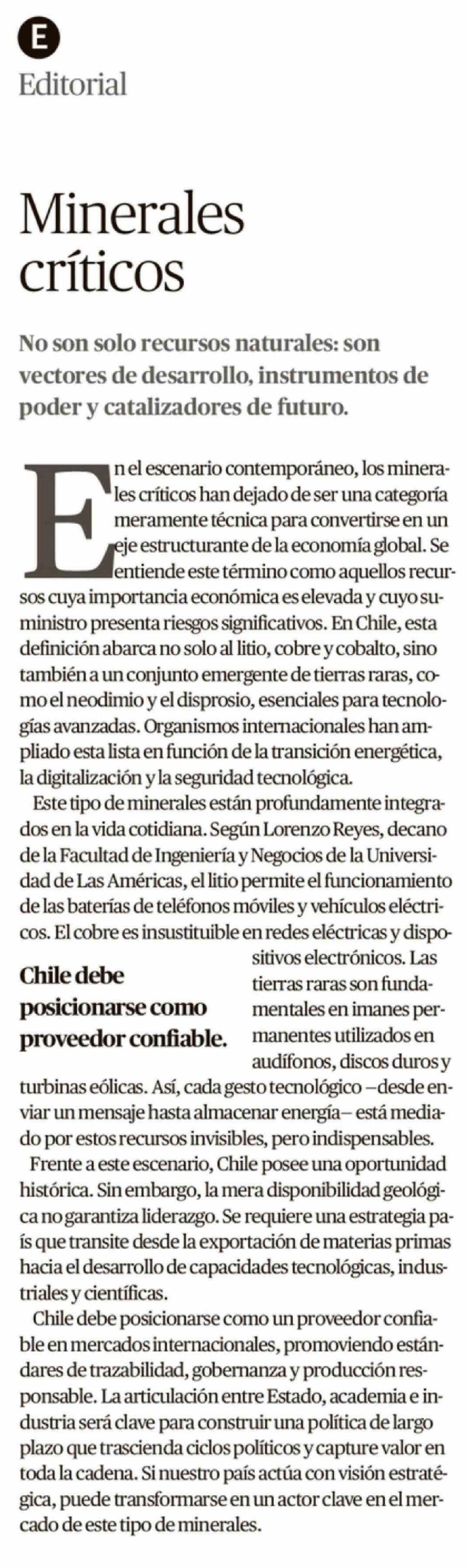 Título: Editorial: Minerales críticos