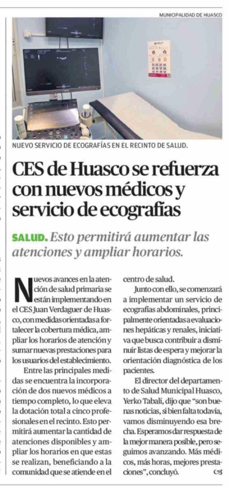 CES de Huasco se refuerza con nuevos médicos y servicio de ecografías