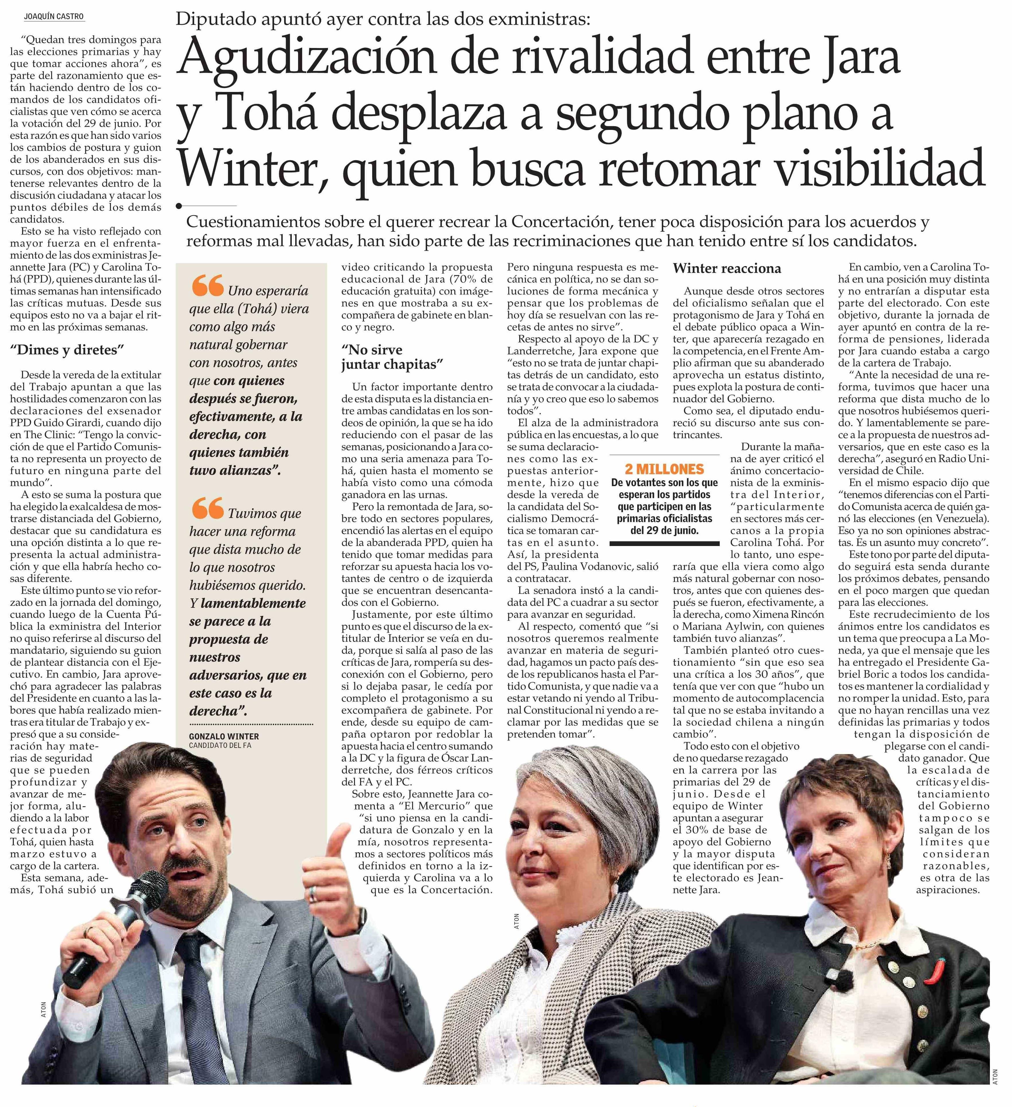 Agudización de rivalidad entre Jara y Tohá desplaza a segundo plano a Winter, quien busca retomar visibilidad