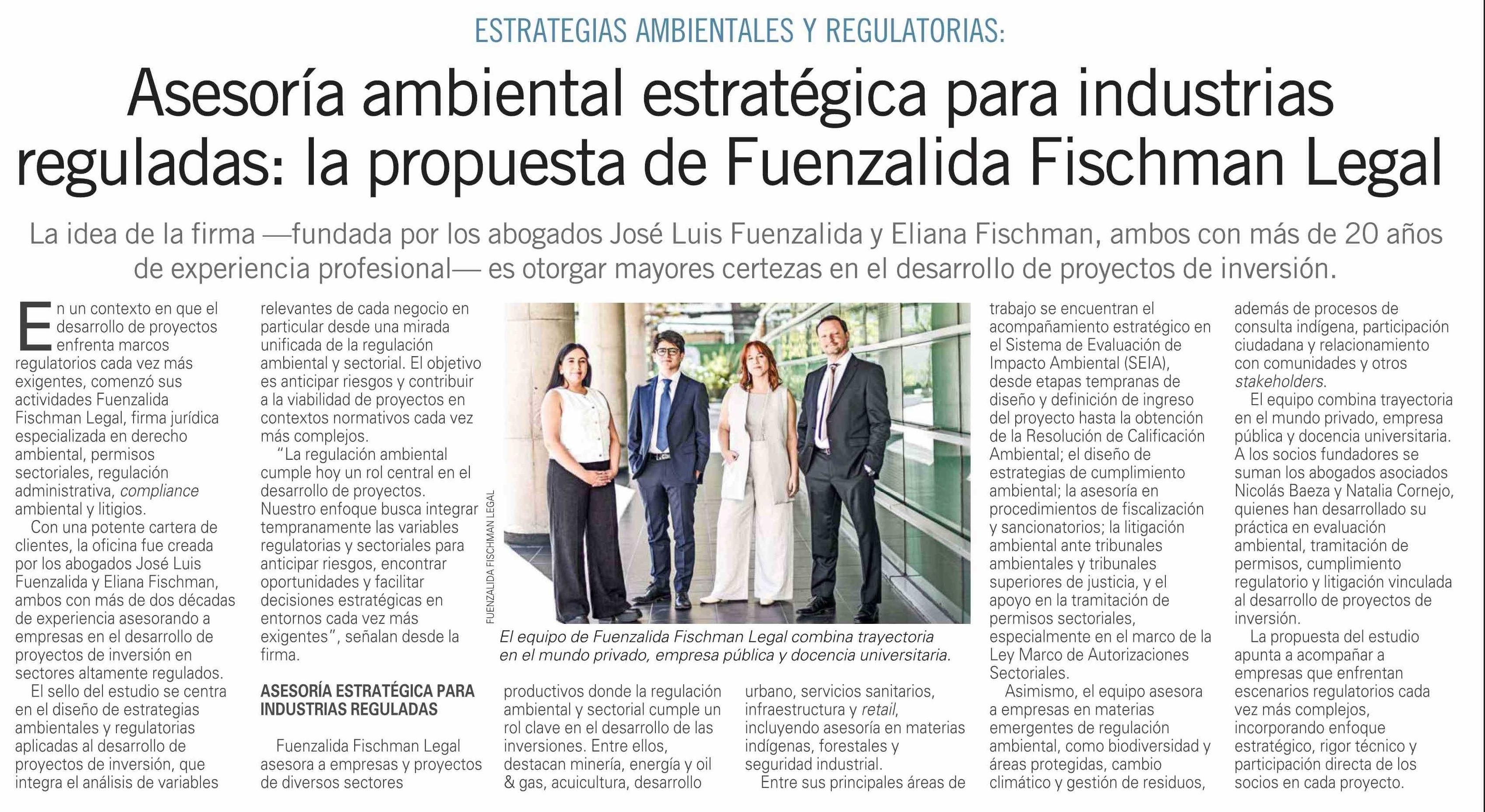Asesoría ambiental estratégica para industrias reguladas: la propuesta de Fuenzalida Fischman Legal