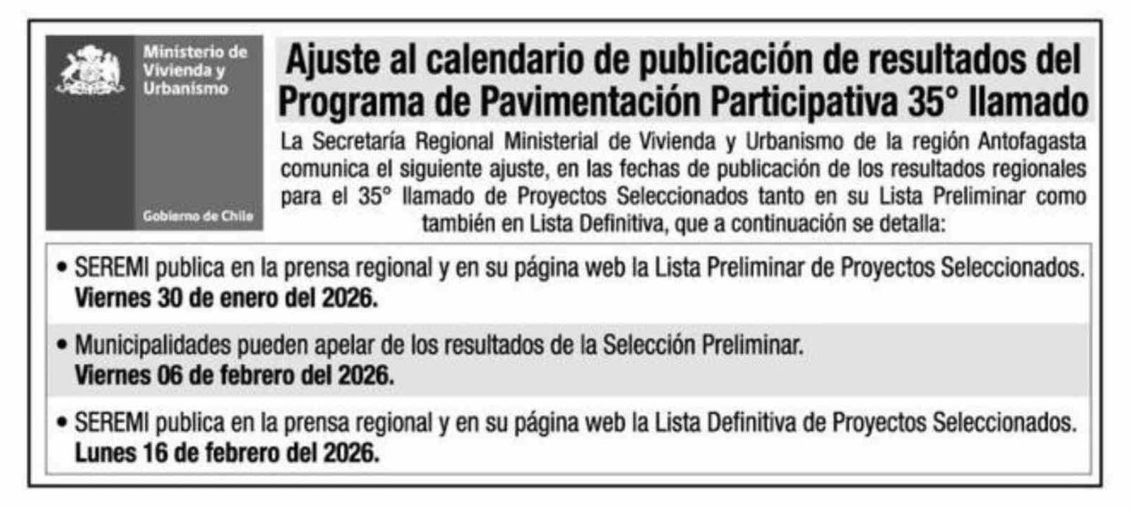 Extractos: Ajuste al calendario de publicación de resultados del Programa de Pavimentación Participativa 35° llamado