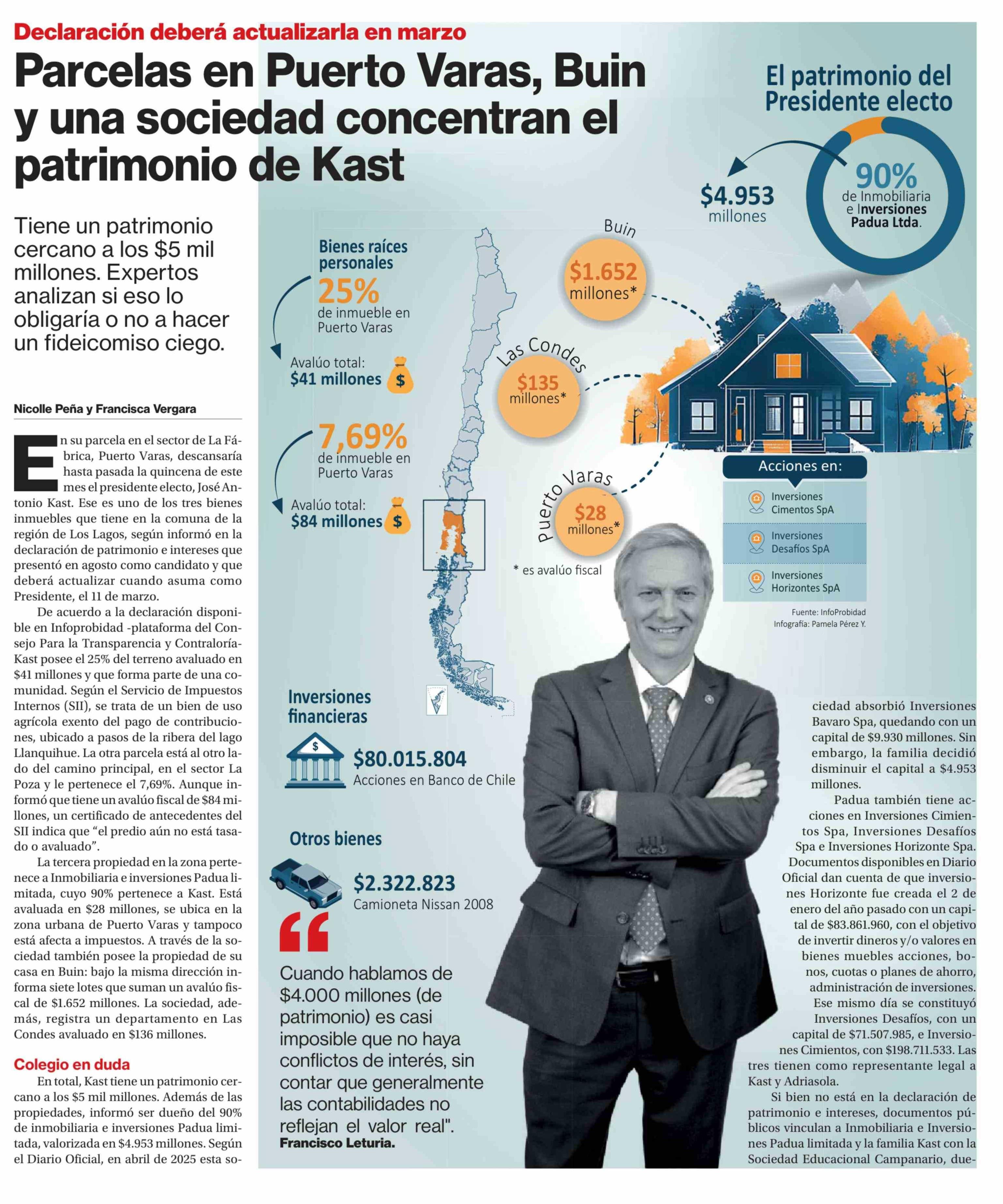 Parcelas en Puerto Varas, Buin y una sociedad concentran el patrimonio de Kast