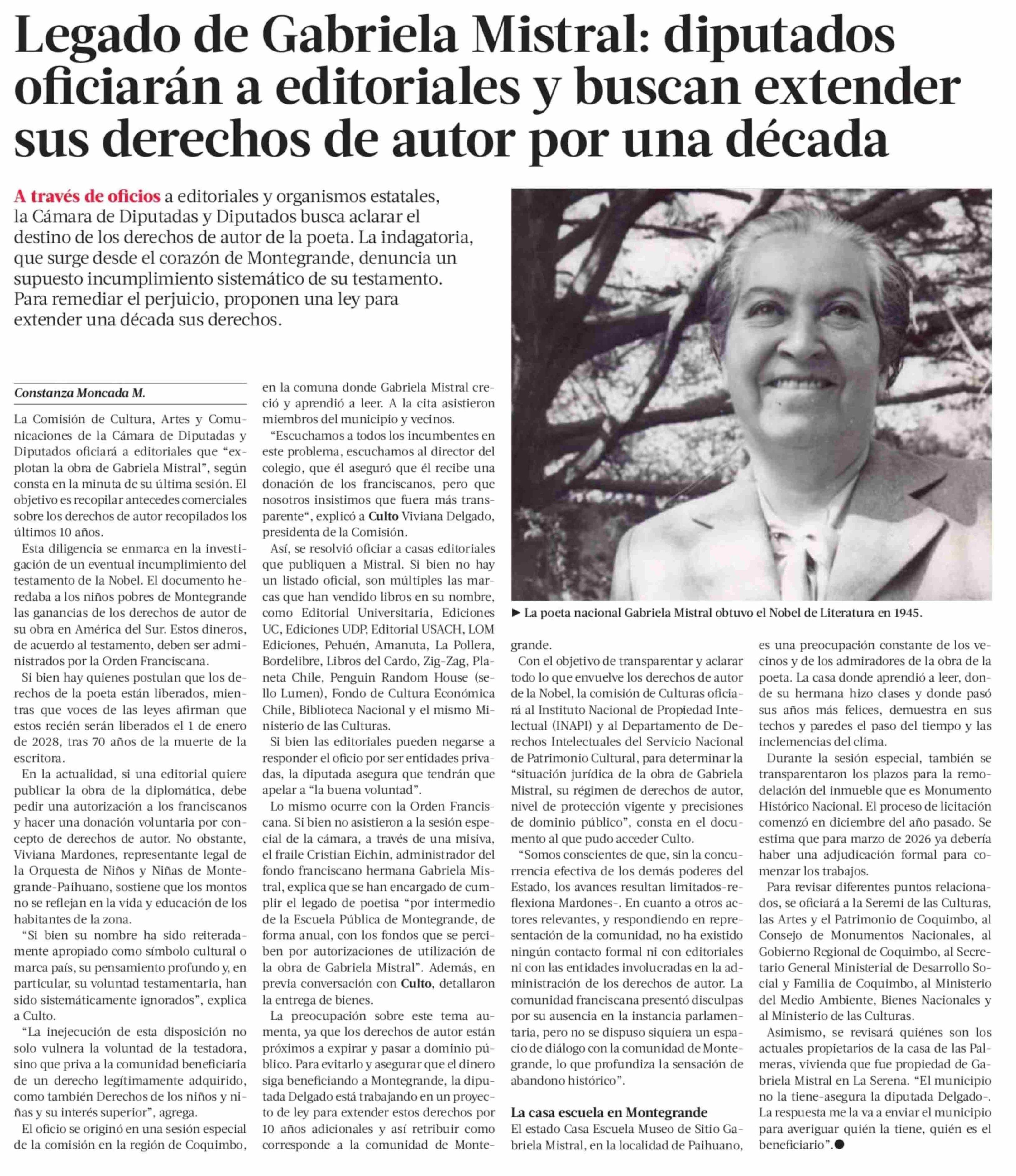 Legado de Gabriela Mistral: diputados oficiarán a editoriales y buscan extender sus derechos de autor por una década