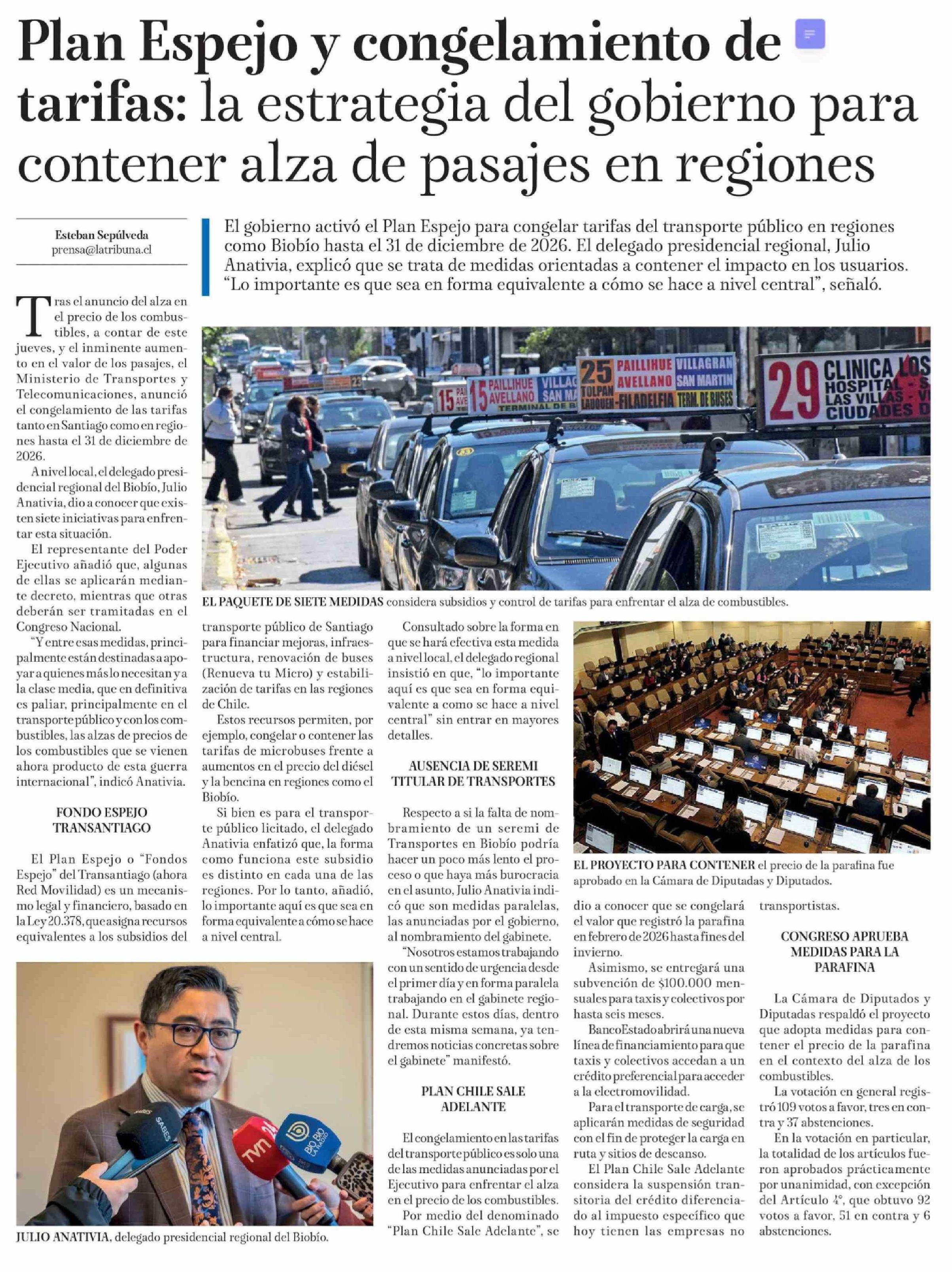 Título: Plan Espejo y congelamiento de tarifas: la estrategia del gobierno para contener alza de pasajes en regiones