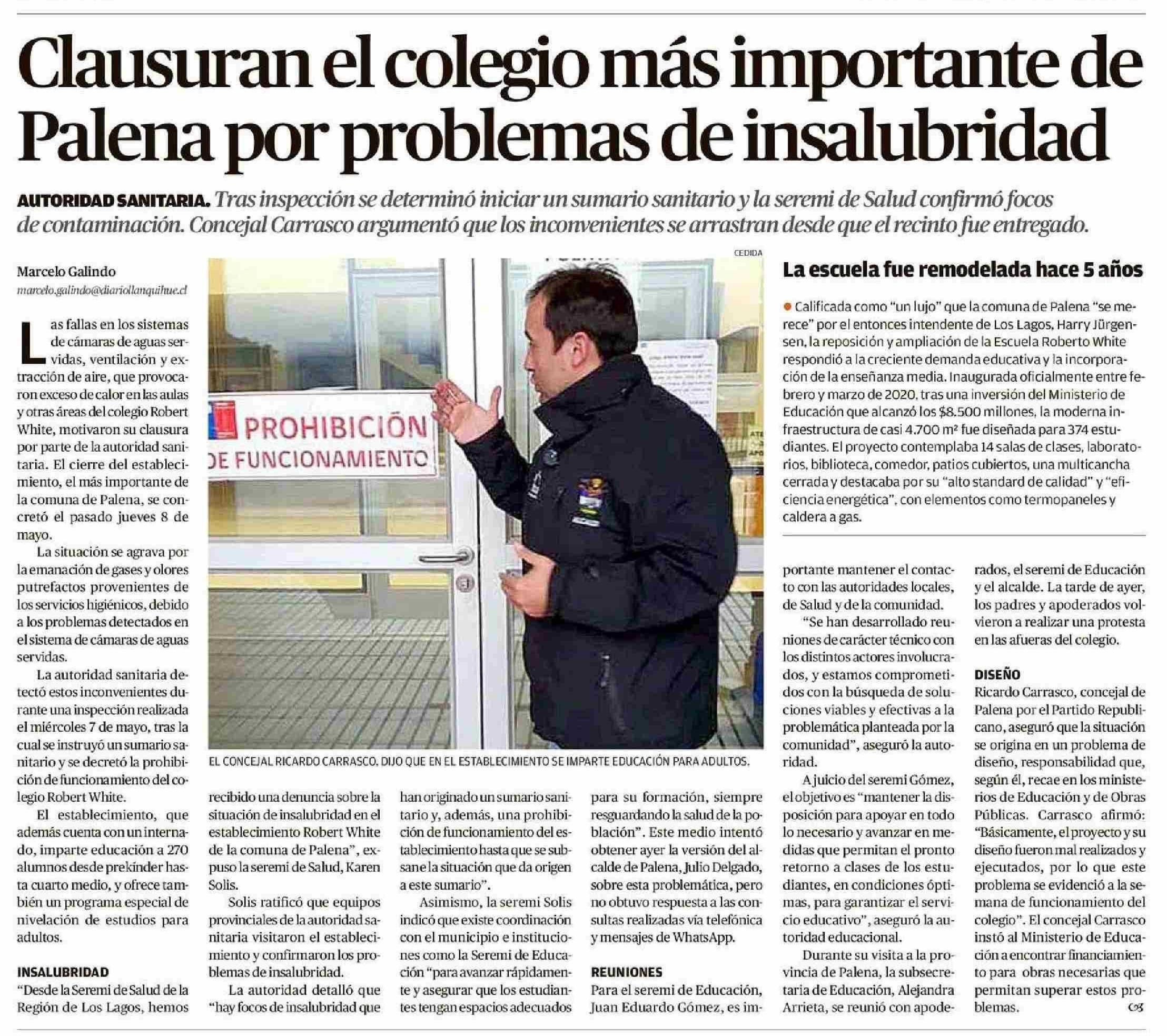 Clausuran el colegio más importante de Palena por problemas de insalubridad