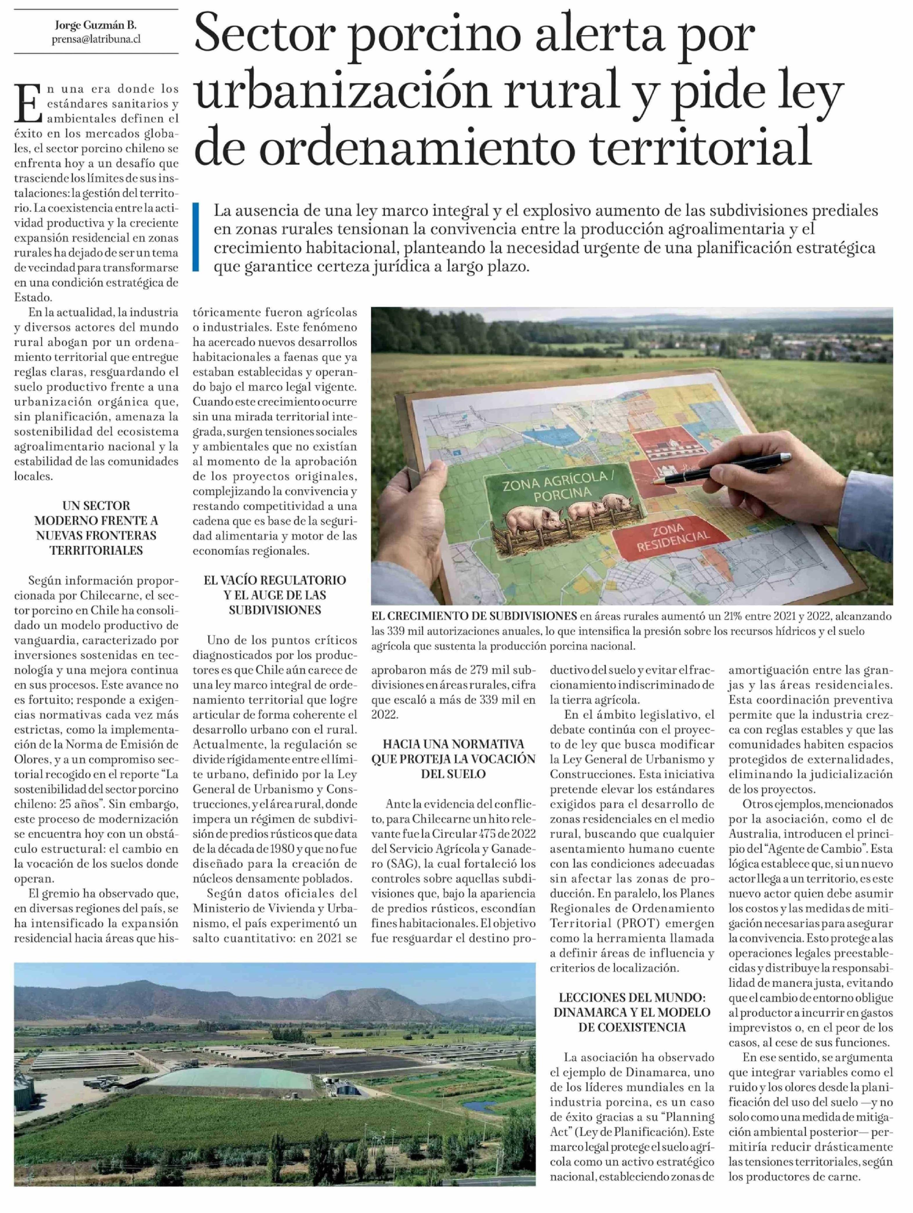 Sector porcino alerta por urbanización rural y pide ley de ordenamiento territorial