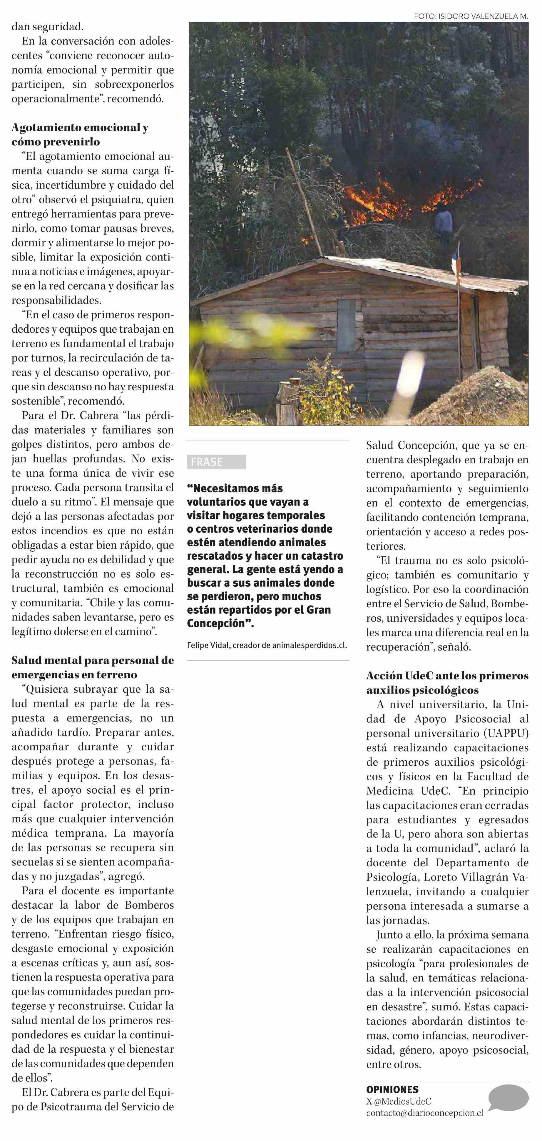 Especialistas UdeC entregan recomendaciones para resguardar la salud mental ante incendios forestales