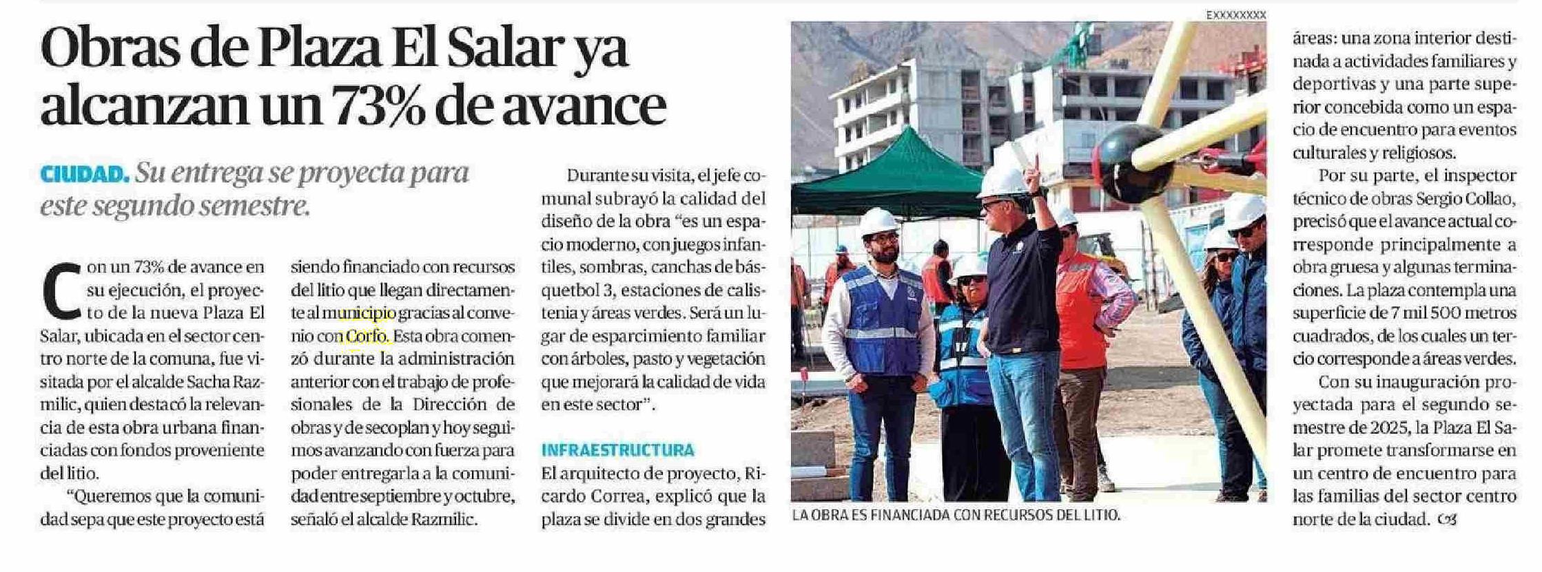 Obras de Plaza El Salar ya alcanzan un 73% de avance