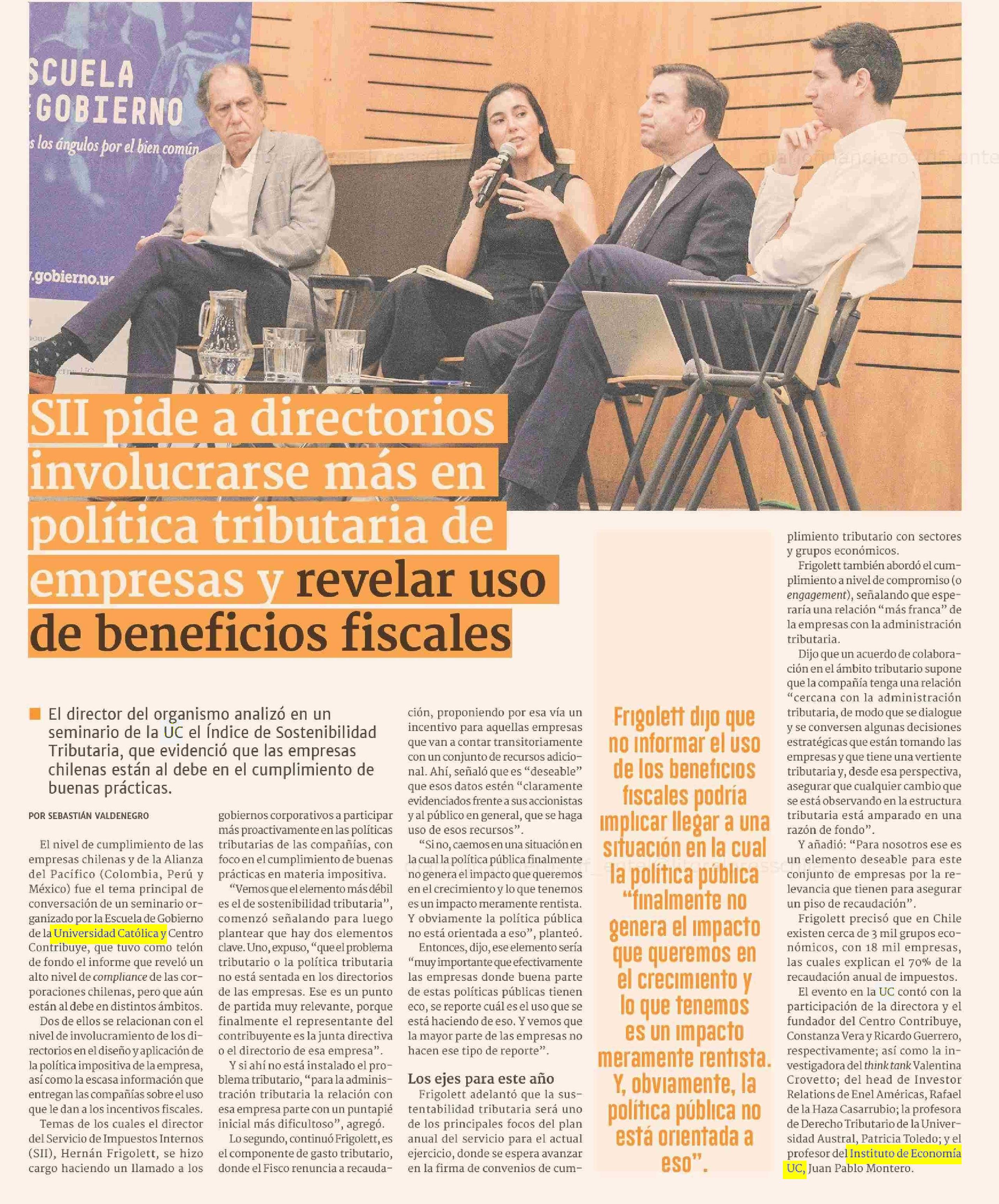 SII pide a directorios involucrarse más en política tributaria de empresas y revelar uso de beneficios fiscales